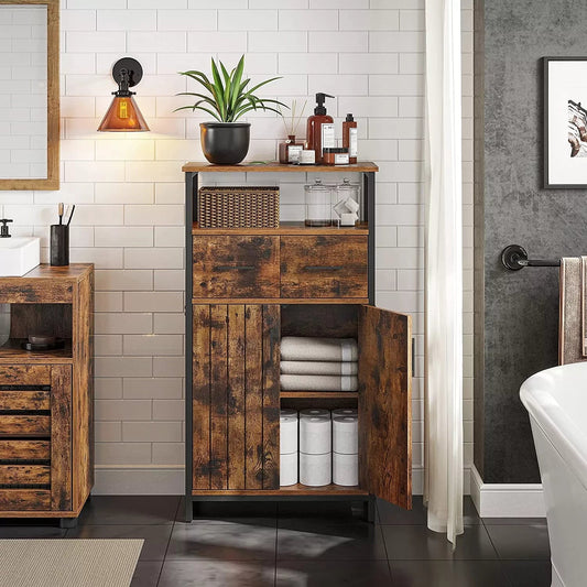 In En OutdoorMatch Kast Lewis- 2 Lade - Open Vak - Dressoir - Badkamerkast - 37x30x80cm - Vintage - Bruin Zwart