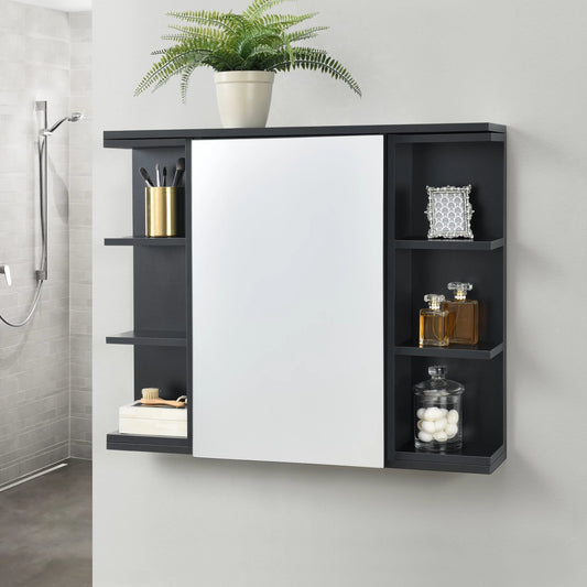 In And OutdoorMatch Badkamermeubel Leora - Met Spiegel - Spiegelkast - Zwart - Spaanplaat - Stijlvol Design