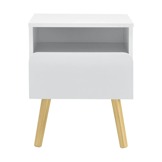 In And OutdoorMatch Nachtkastje Sallie - Met Lade - 50x40x34 cm - Wit en Hout - Spaanplaat en Grenen - Modern Design