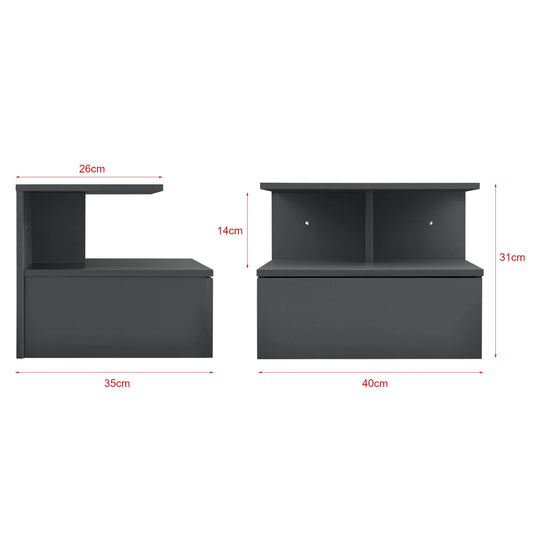In And OutdoorMatch Zwevend Nachtkastje Ignatius - 30x40x29 cm - Met 2 Lade - Donkergrijs - Spaanplaat - Stijlvolle uitstraling