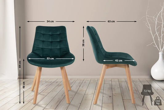 In And OutdoorMatch Eetkamerstoelen Allen - Groen - Set van 2 - Fluweel - Hoge kwaliteit bekleding - Deluxe Eetkamerstoelen - Exclusieve Look
