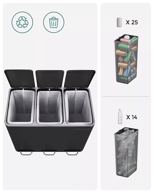 In And OutdoorMatch Pedaalemmer Idella - 30L - Prullenbak afvalscheiding - RVS - 1 deel apart - Zwart