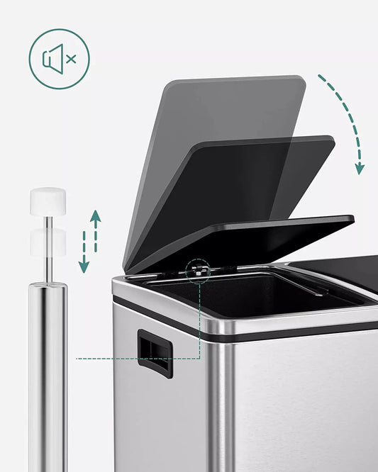 In And OutdoorMatch Pedaalemmer Aisha - 30L - Prullenbak afvalscheiding - RVS - 1 deel los - Zwart - soft close