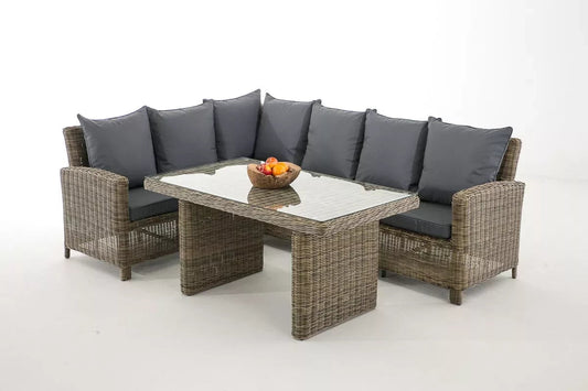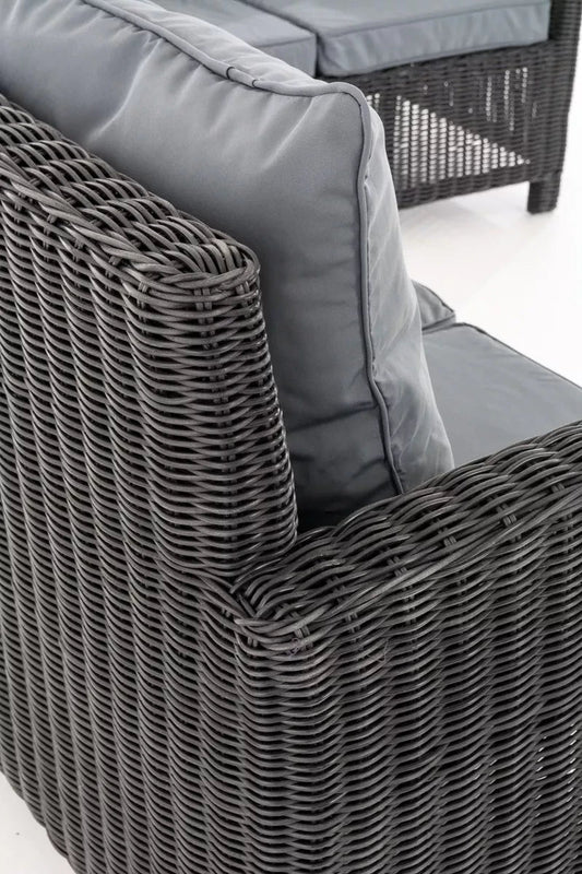 In And OutdoorMatch Premium Tuinset Alvarez - Glazen tafel rotan wicker - Tuinmeubelen - Eettafel - Loungeset - Buitentafel - Salontafel - ijzergrijs - 7 personen