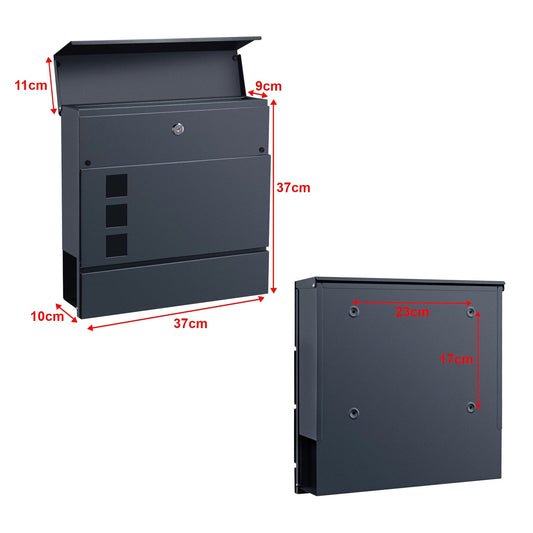 In And OutdoorMatch Briefkasten Stacy - 37x37x10,5 cm - Anthrazit - Stahl - Abschließbar - Schutzklappe - Mit Zeitungshülle