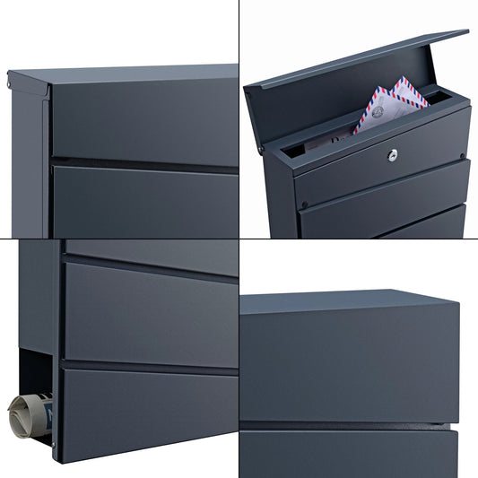 In And OutdoorMatch Briefkasten Derick - 37x37x10,5 cm - Stahl - Anthrazit - Mit Zeitungshülle - Abschließbar - Schutzklappe