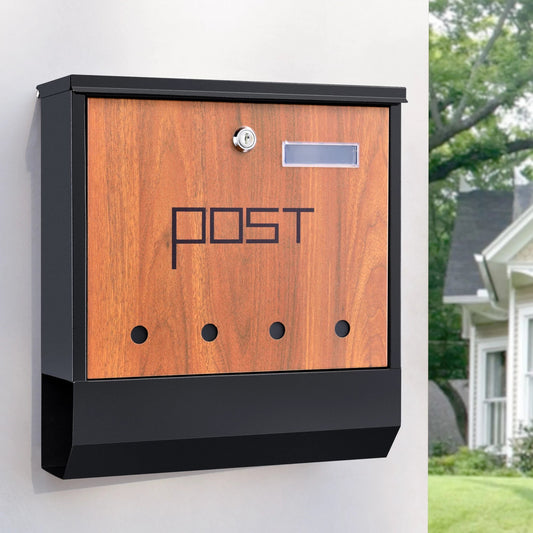 In And OutdoorMatch Briefkasten Amira - 37x37x10,5 cm - Anthrazit und Holzfarben - Stahl - Abschließbar - Schutzklappe - Mit Zeitungshülle
