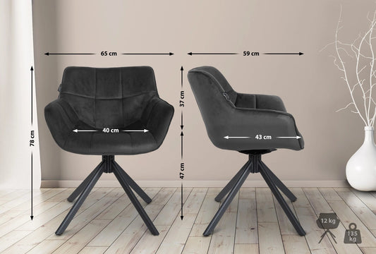 In And OutdoorMatch Esszimmerstuhl Mark – Grau – Samt – Hochwertige Polsterung – Stilvoller Esszimmerstuhl – Luxuriöser und moderner Look