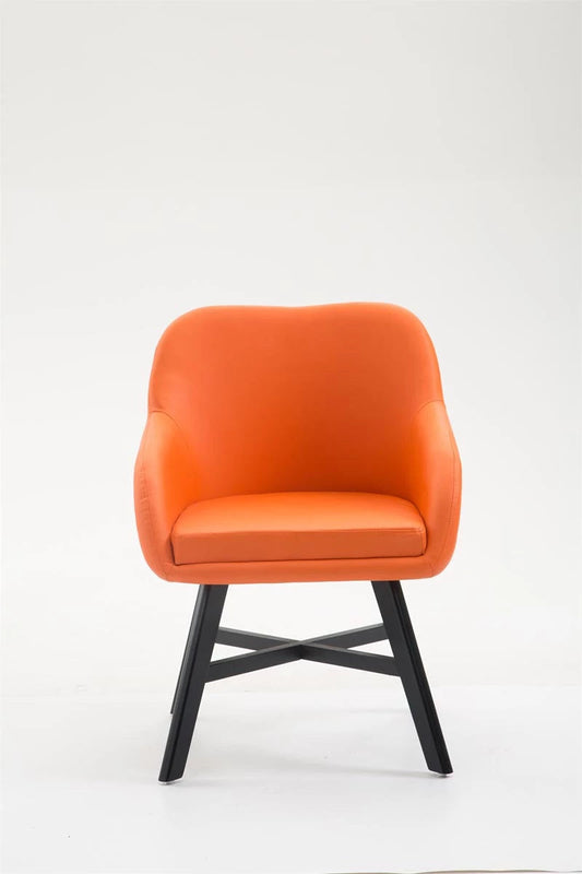 In And OutdoorMatch Stoel Julius - Zwart - Oranje Stoel - Bezoekersstoel - Eetkamerstoel - Kunstleer - Hoge Kwaliteit Bekleding - Moderne Stijl Stoel - Speelse Bezoekersstoel