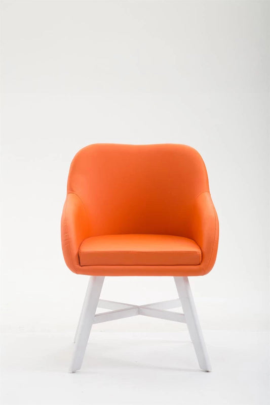 In And OutdoorMatch Stoel Kim - Wit - Oranje Stoel - Bezoekersstoel - Eetkamerstoel - Kunstleer - Hoge Kwaliteit Bekleding - Moderne Stijl Stoel - Speelse Bezoekersstoel