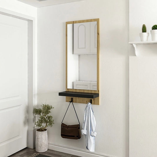 In And OutdoorMatch Wandgarderobe Annamae – 90 x 45 x 16 cm – Eiche und Schwarz – Spanplatte, Kunststoff und Stoff – stilvolles Design