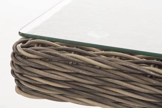 In And OutdoorMatch Beistelltisch Pierce – Glastisch – Gartentisch aus Rattangeflecht – Grau – Couchtisch – 59 x 59 x 73 cm