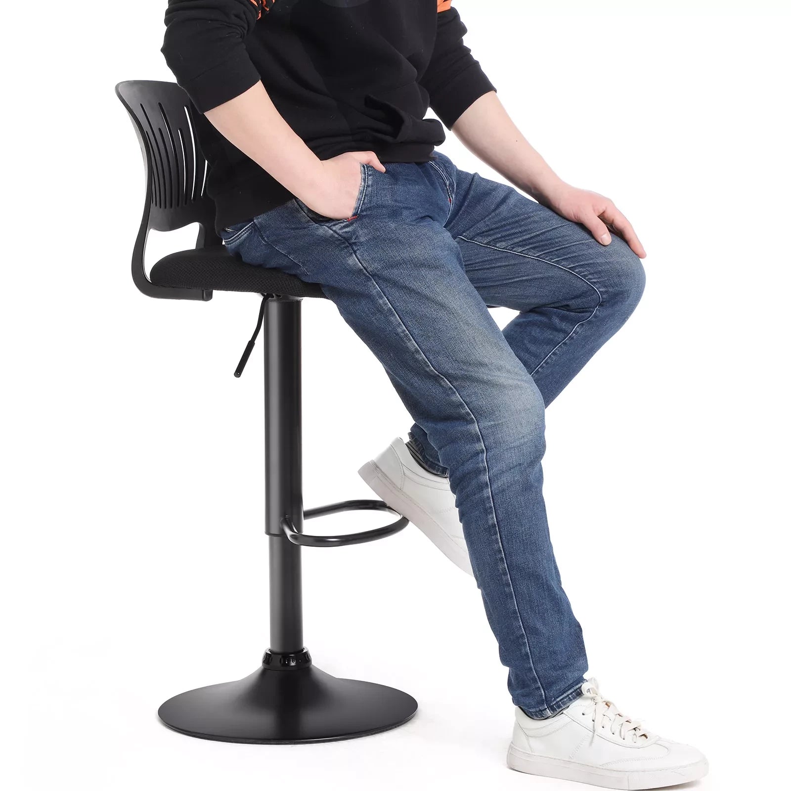 In And OutdoorMatch Barhocker Alford – Schwarz – 40 x 42 x 107 cm – Ergonomische Barstühle – Höhenverstellbar – 2er-Set – Mit Rückenlehne – Für Küche und Bar