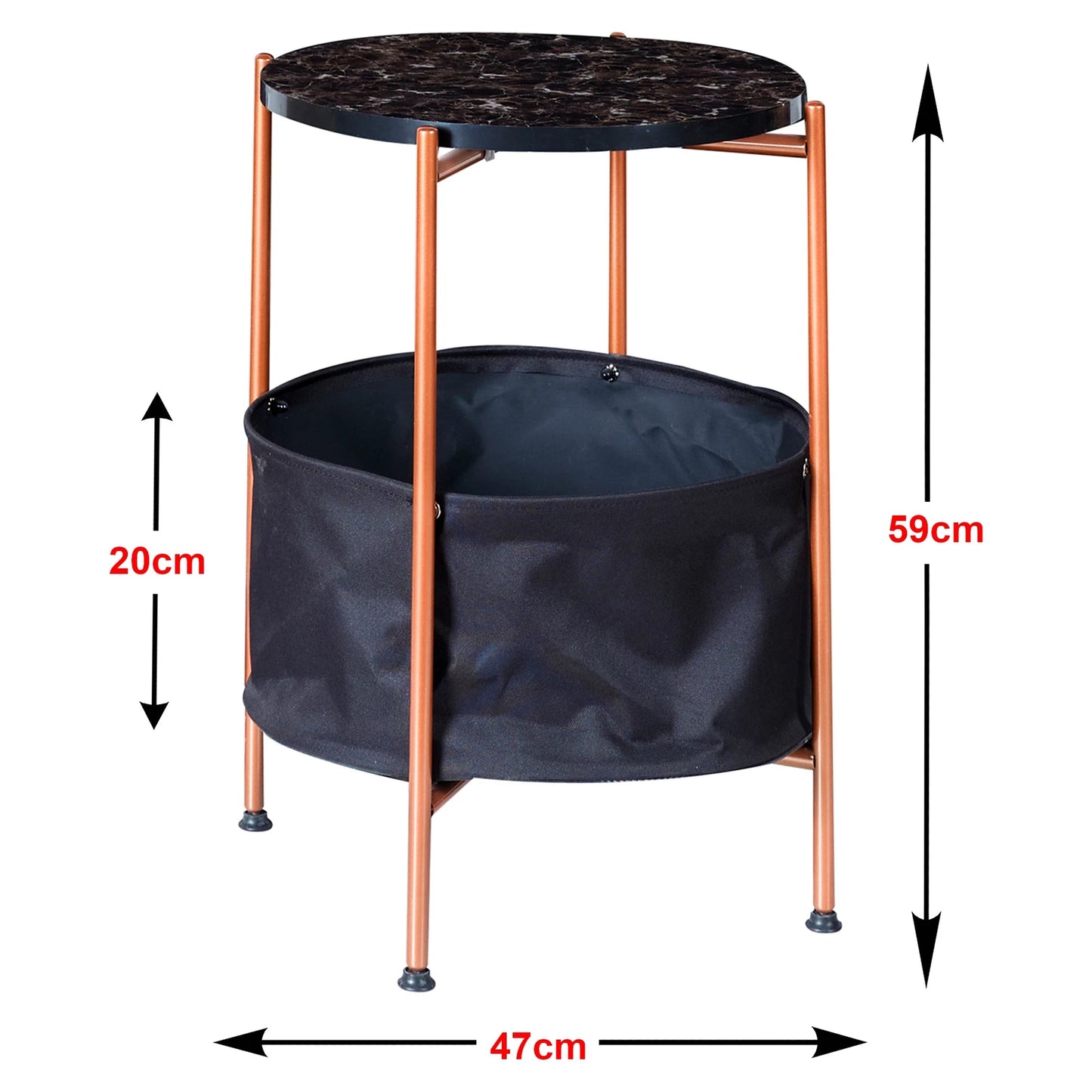 In And OutdoorMatch Beistelltisch Catherine – 59 x 47 cm – bronzefarbener und schwarzer Marmor – Metall, Spanplatte und Stoff – praktischer Stauraum – stilvolles Design