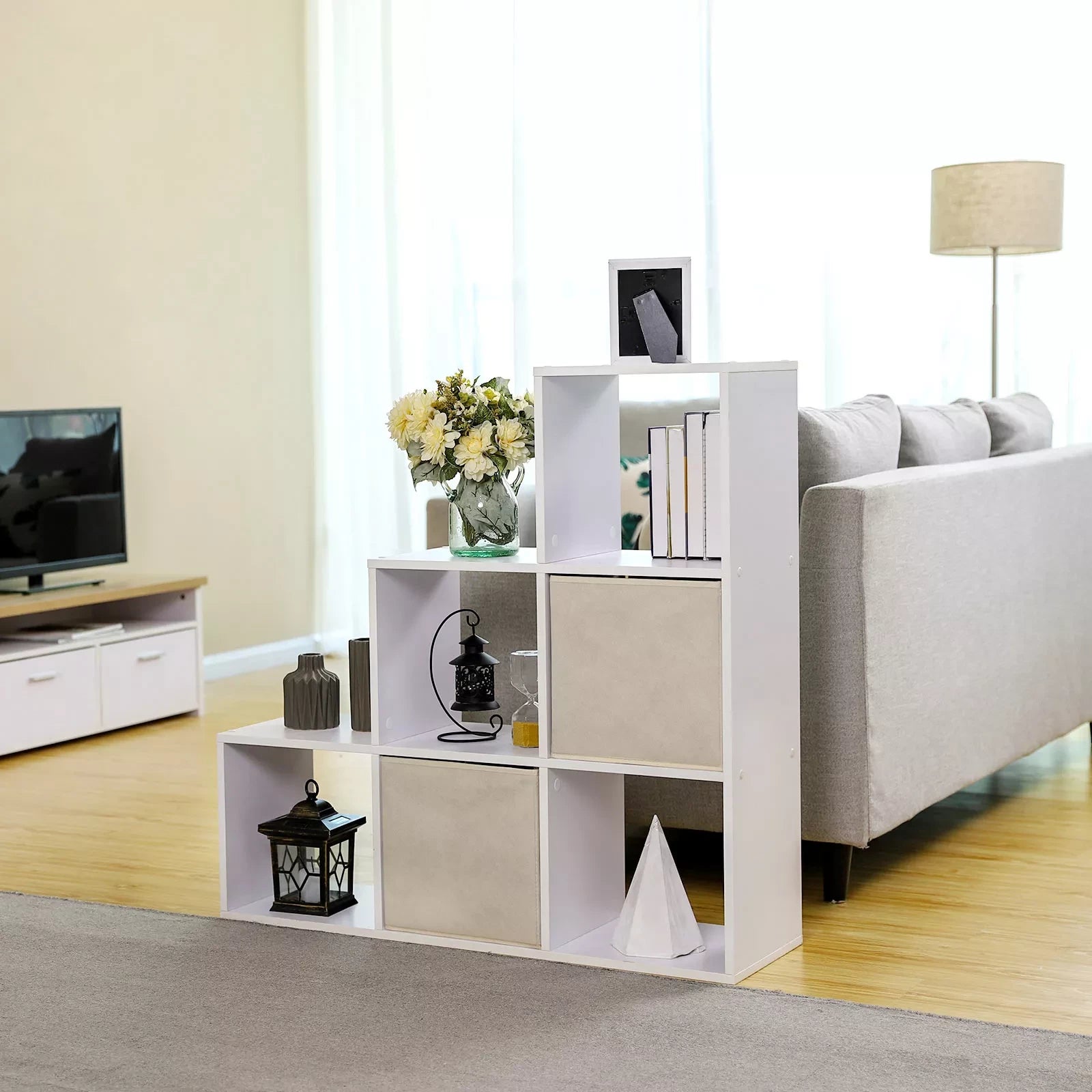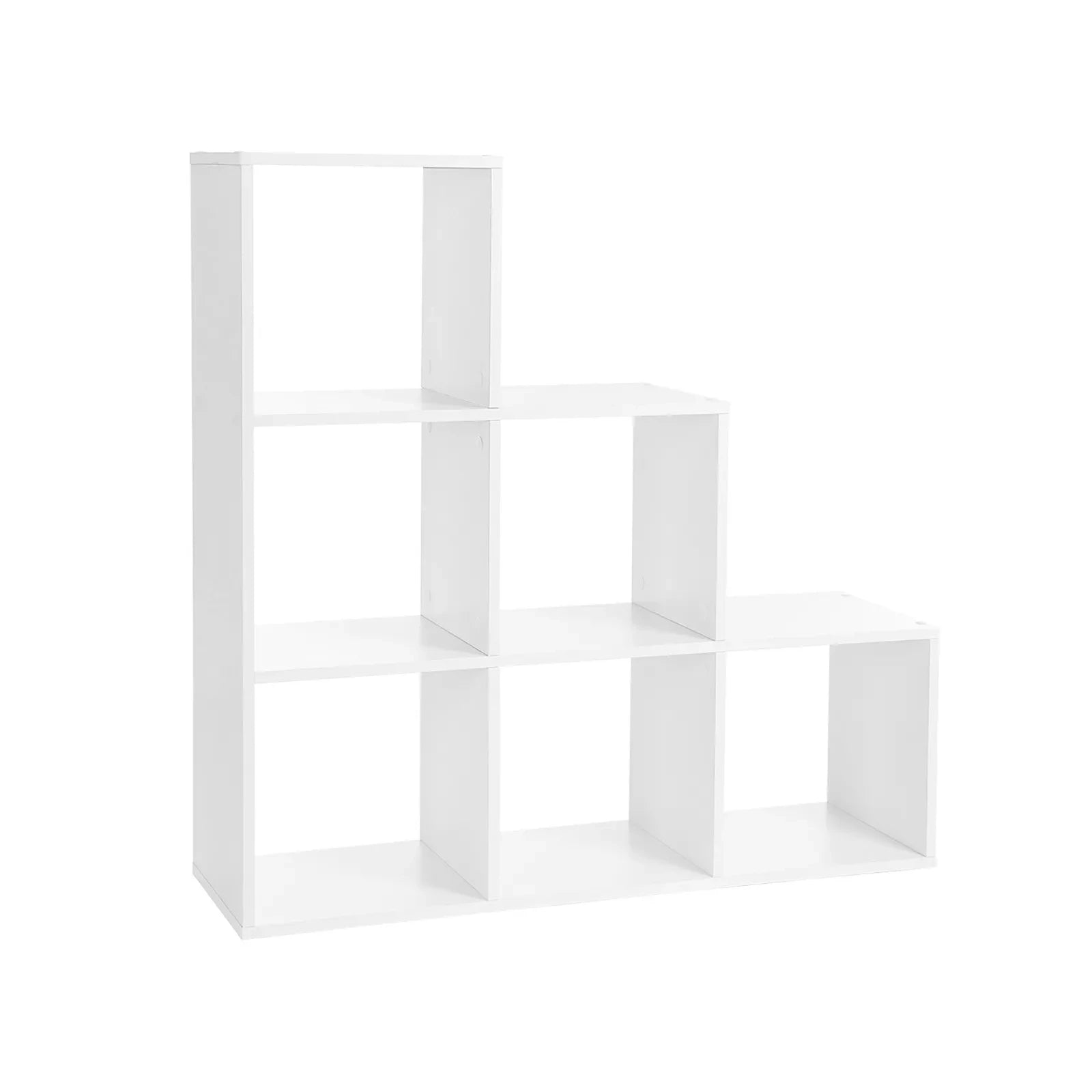 Treppe mit 6 Würfeln Einzigartiges Design mit funktionalem Zweck Sind Sie die gewöhnlichen Bücherregale leid? Dann ist dies Ihre Chance, Ihrem Zuhause mit diesem einzigartigen Treppen-Bücherregal etwas Charakter zu verleihen. In 6 Fächern finden Sie ausreichend Platz für Ihre Abenteuerromane, Actionspiele und Fotos vom letzten Familienurlaub. Um die Montage zu erleichtern, sind alle Einzelteile dieses Schrankes nummeriert. Für mehr Stabilität ist außerdem ein Kippschutz vorhanden. Produktdetails: Farbe: Weiß Material: Spanplatte mit Melaminfurnier Produktabmessungen: 97,5 x 97,5 x 29 cm (B x H x T) Gewicht: 18 kg Belastbarkeit pro Würfel: 15 kg Lieferumfang: 1 x Bücherregal 1 x Hardware-Tasche 1 x Gebrauchsanweisung (DE,EN,FR,ES,IT)InenOutdoormatch Hinweise:Reinigen Sie das Bücherregal mit einem feuchten Tuch und wischen Sie es anschließend trocken.Für die Sicherheit von Kindern und Haustieren installieren Sie das Kippschutzsystem.