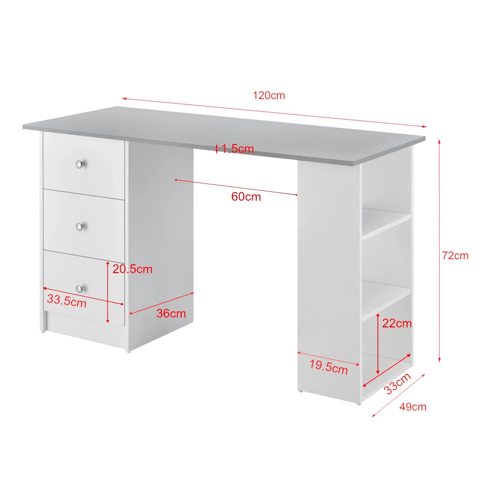 In And OutdoorMatch Schreibtisch Wade – Mit 3 Schubladen – 120 x 49 x 72 cm – Hellgrau und Weiß – Spanplatte – Stilvolles Design