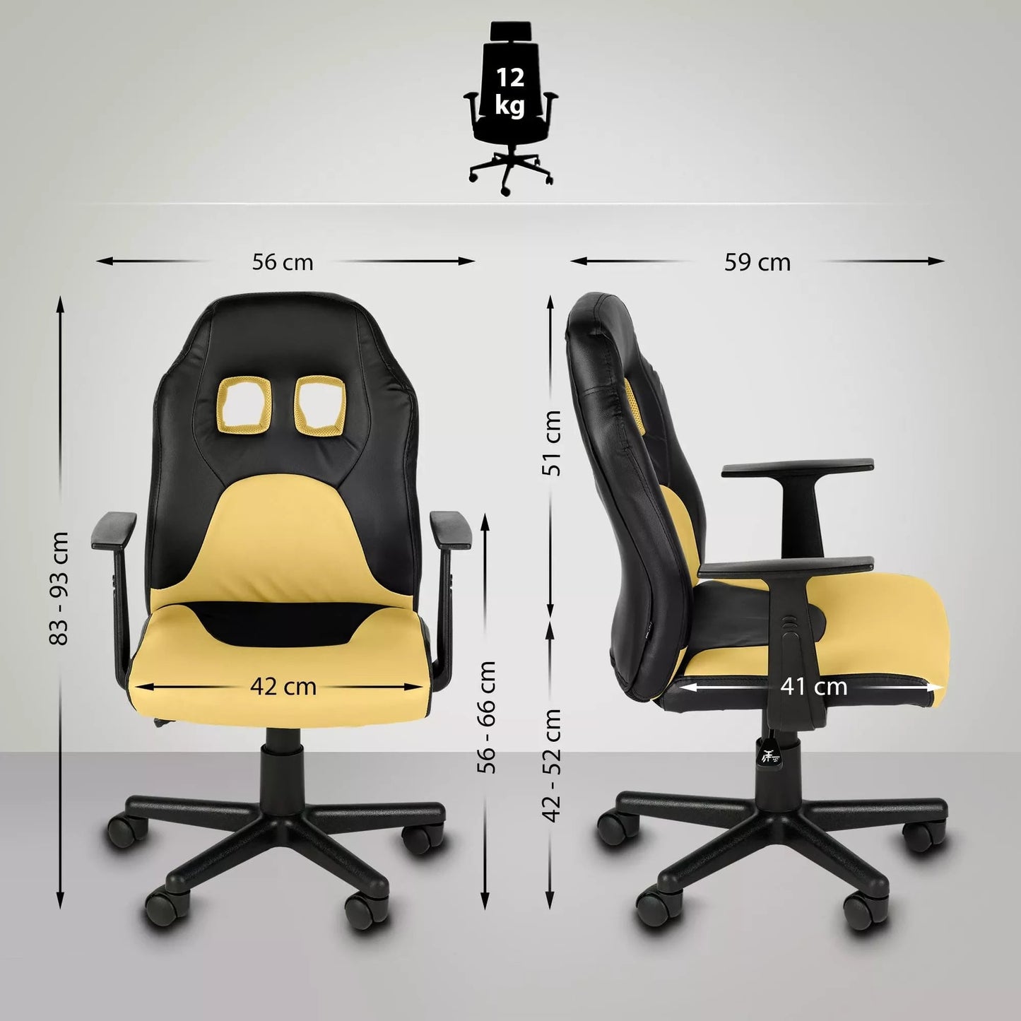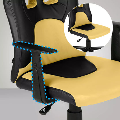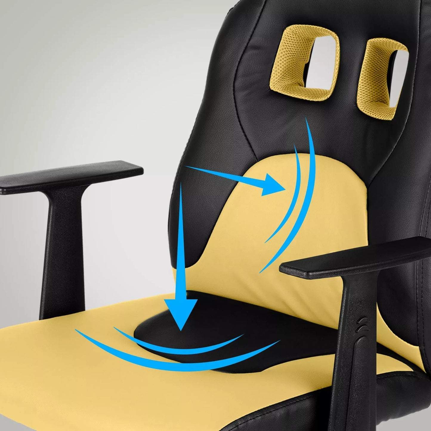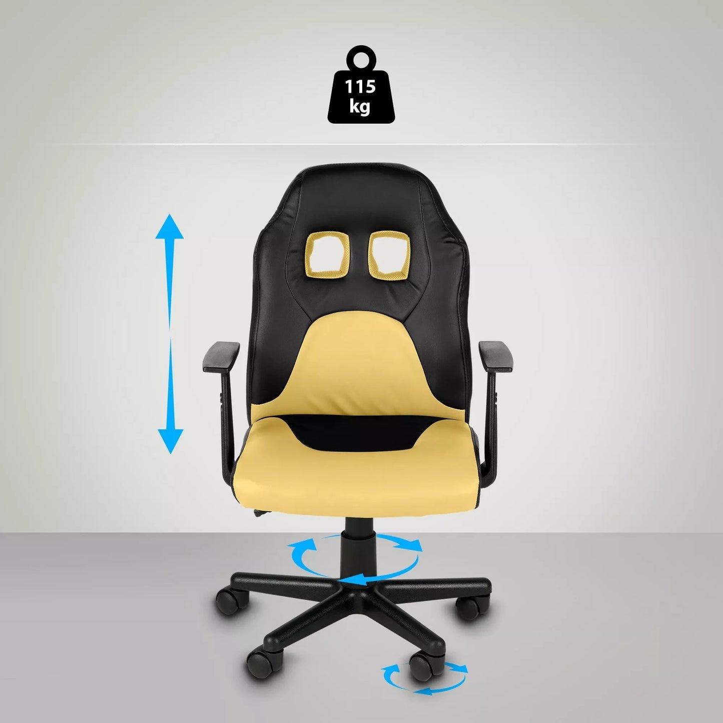 In And OutdoorMatch Kinderbürostuhl Randi – Kunstleder – Gelb – Auf Rollen – Ergonomischer Bürostuhl – Für Kinder – Gaming-Stuhl – Höhenverstellbar