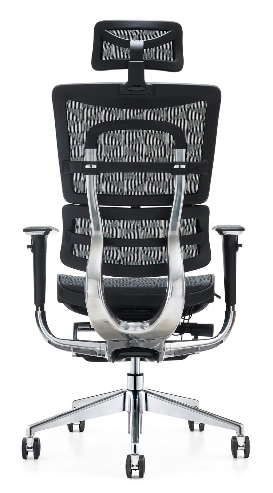 Dank des abgerundeten Nylonrahmens und der schicken Netzpolsterung mit Muster erhält der Bürostuhl eine moderne Optik. Der Stuhl steht auf einem stabilen Aluminiumgestell in Chromoptik. Die beschichteten Walzen sind äußerst langlebig und leise.
