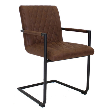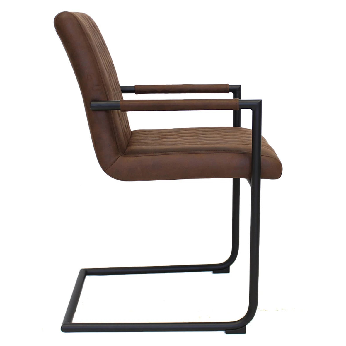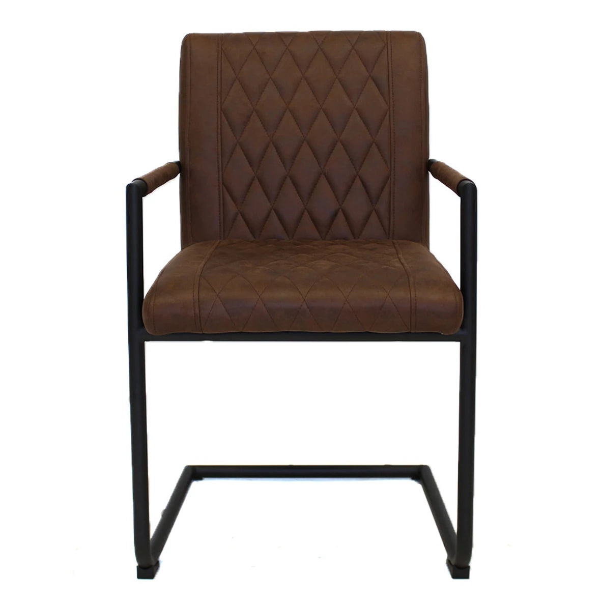 Industriële eetkamerstoel - bruine stof met zwart metalen frame