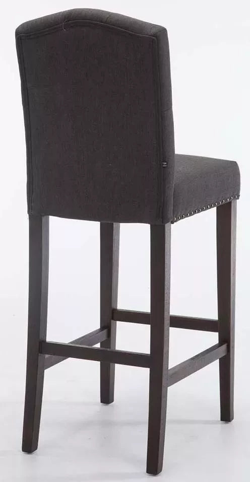 Der Barhocker Louise hat einen Stoffbezug und ist dick gepolstert. Der Sitz ist mit dekorativen Kupferknöpfen versehen, die entlang der Nähte verlaufen. Die hohe Rückenlehne bietet Ihrem Rücken guten Halt. Das 4-Fuß-Gestell besteht aus Gummiholz und verleiht dem Barhocker eine hohe Stabilität. Die Holzstreben in der Mitte des Gestells können als Fußstütze genutzt werden und sorgen auch über einen längeren Zeitraum für ein gutes Sitzgefühl. Die Bodenschoner unter den Beinen verhindern hässliche Kratzer auf Ihrem Boden, sodass das Bewegen des Barhockers kein Problem darstellt. Leichte Verschmutzungen können Sie mit einem Baumwolltuch entfernen. Der Barhocker ist in zwei Holzfarben und 4 verschiedenen Sitzfarben erhältlich.