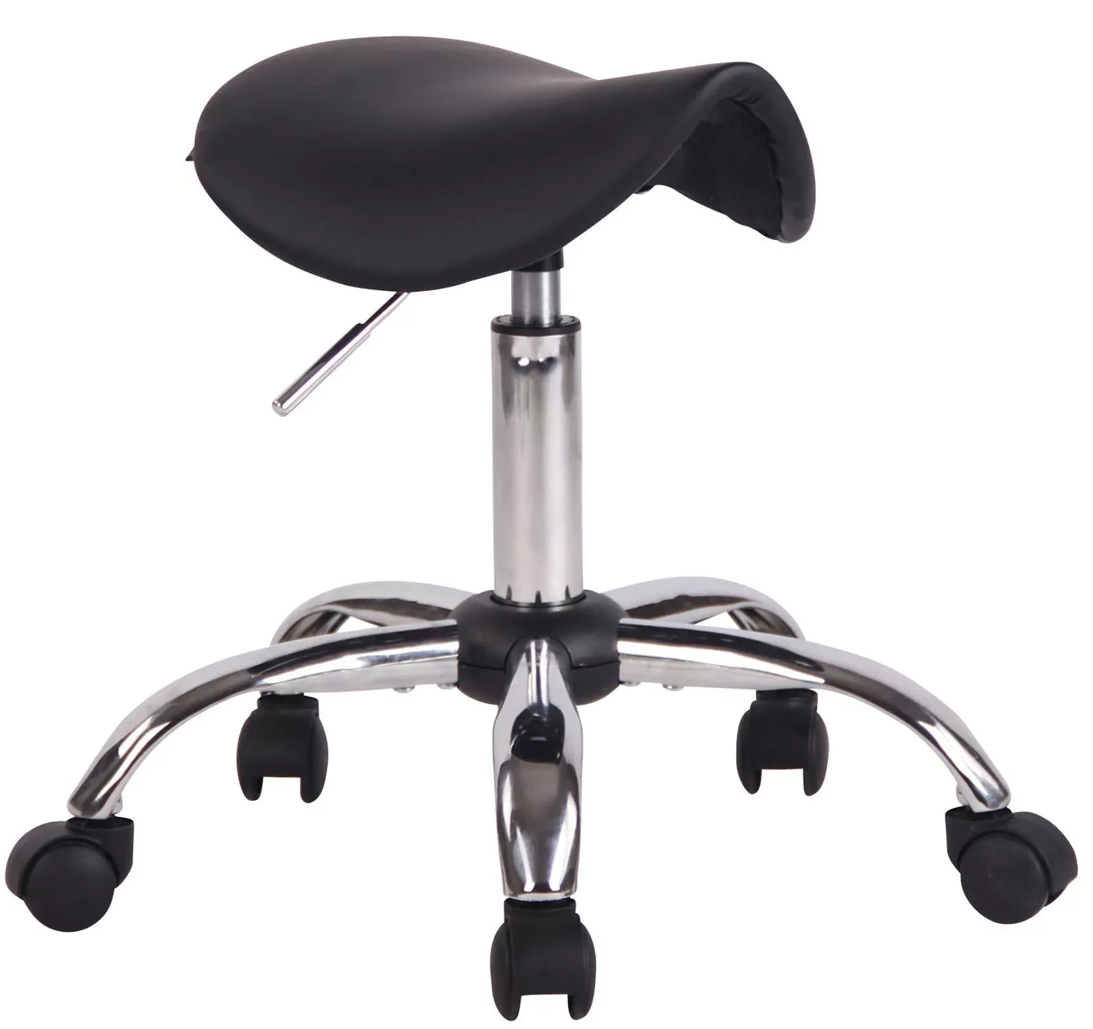 In And OutdoorMatch Luxus-Arbeitshocker Lionel – Schwarz – Auf Rollen – Bürostuhl – Höhenverstellbar 46 – 58 cm – Kunstleder