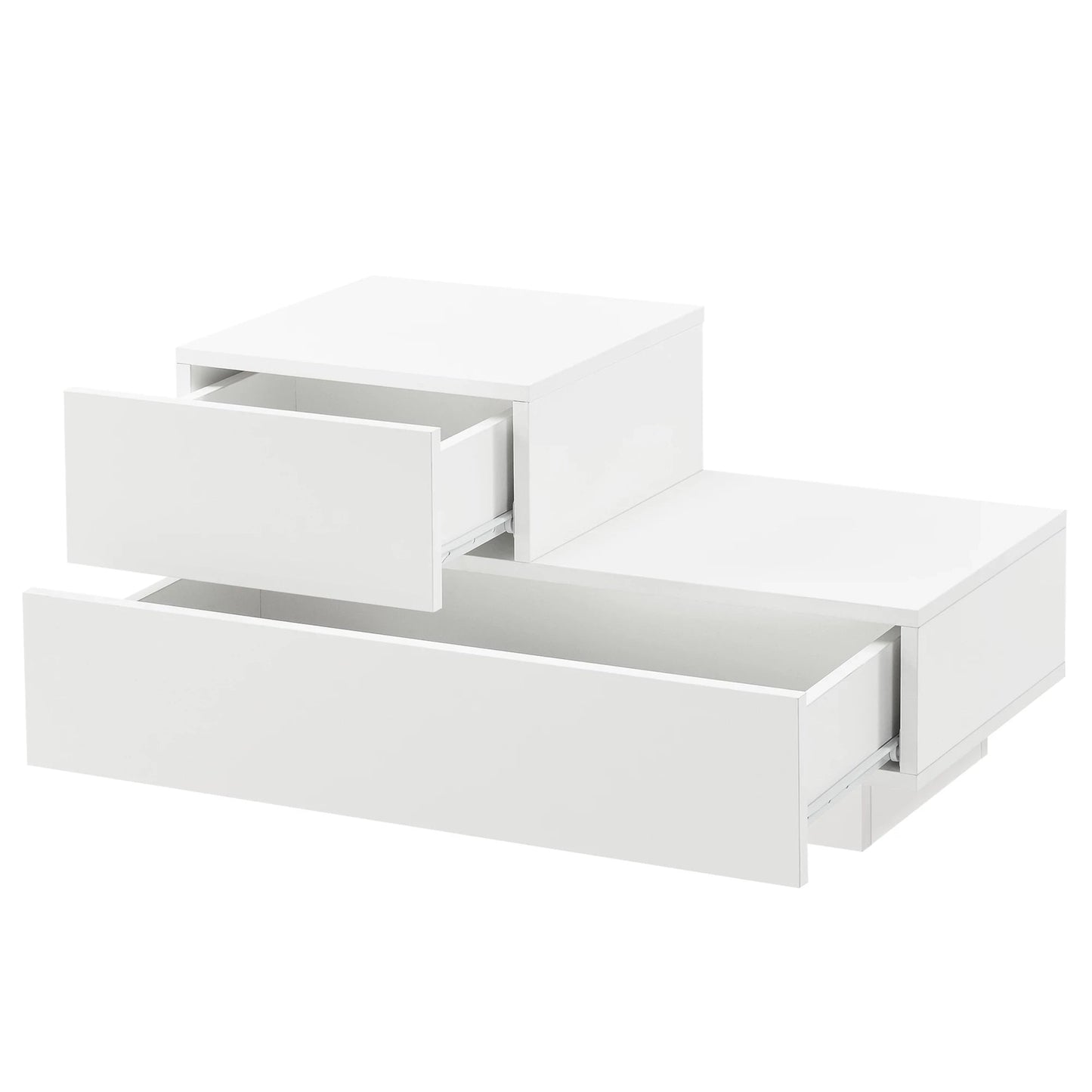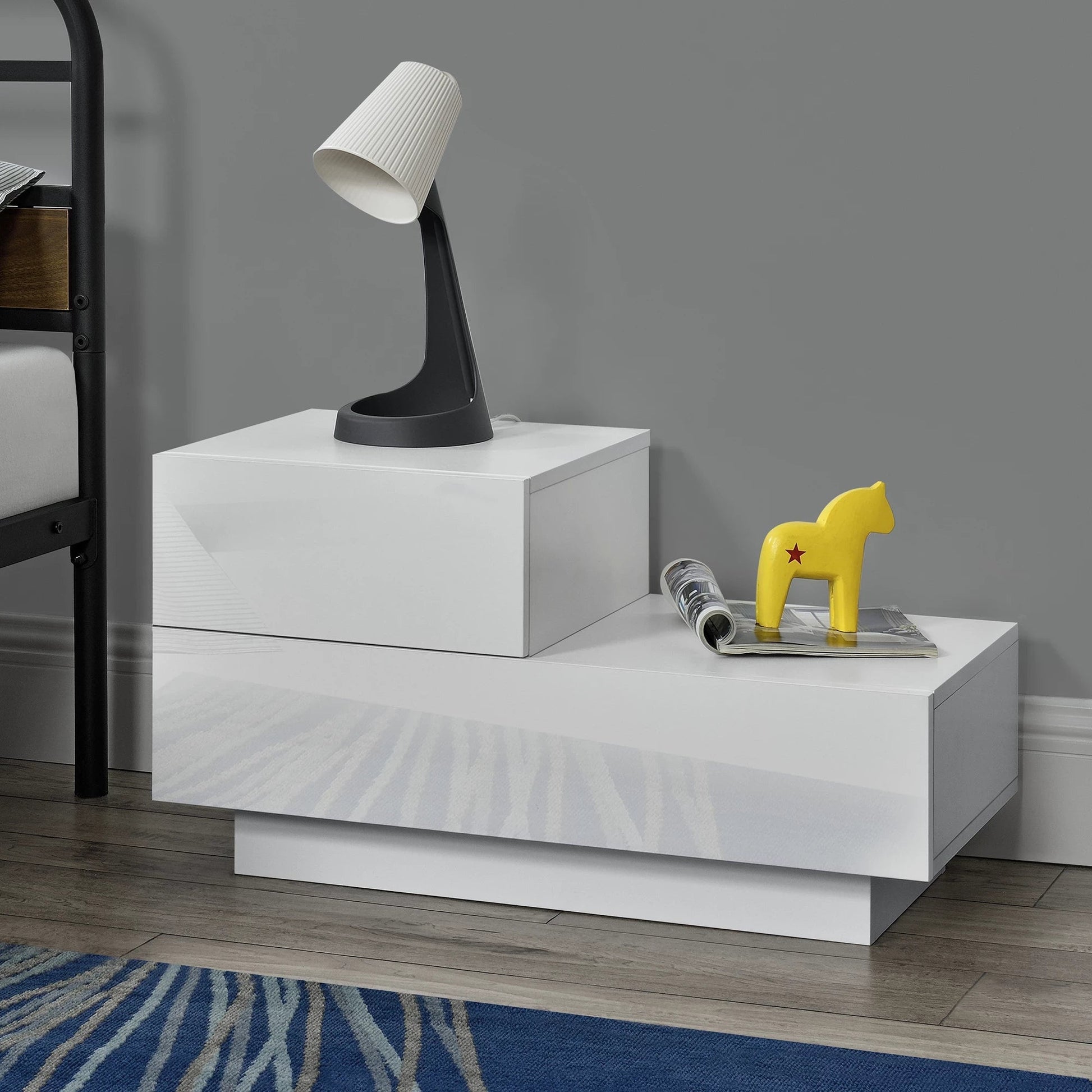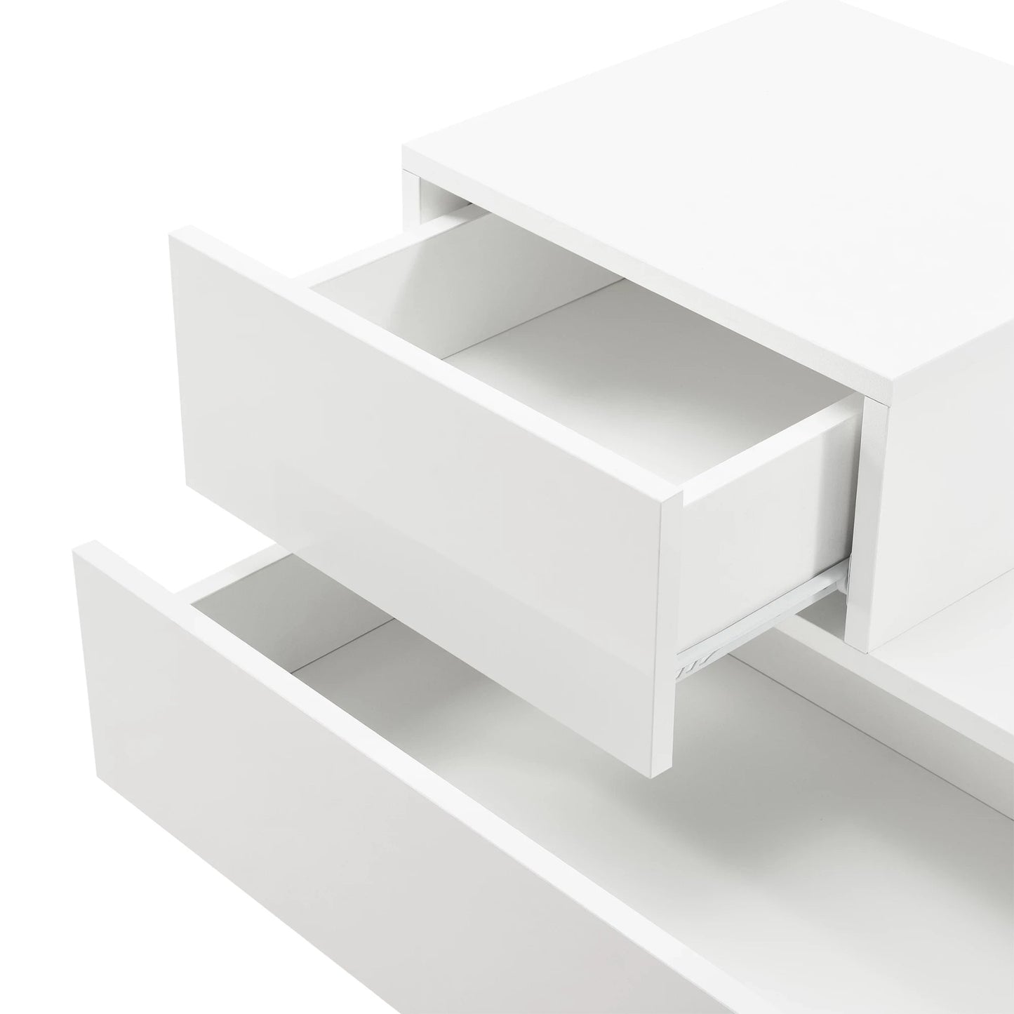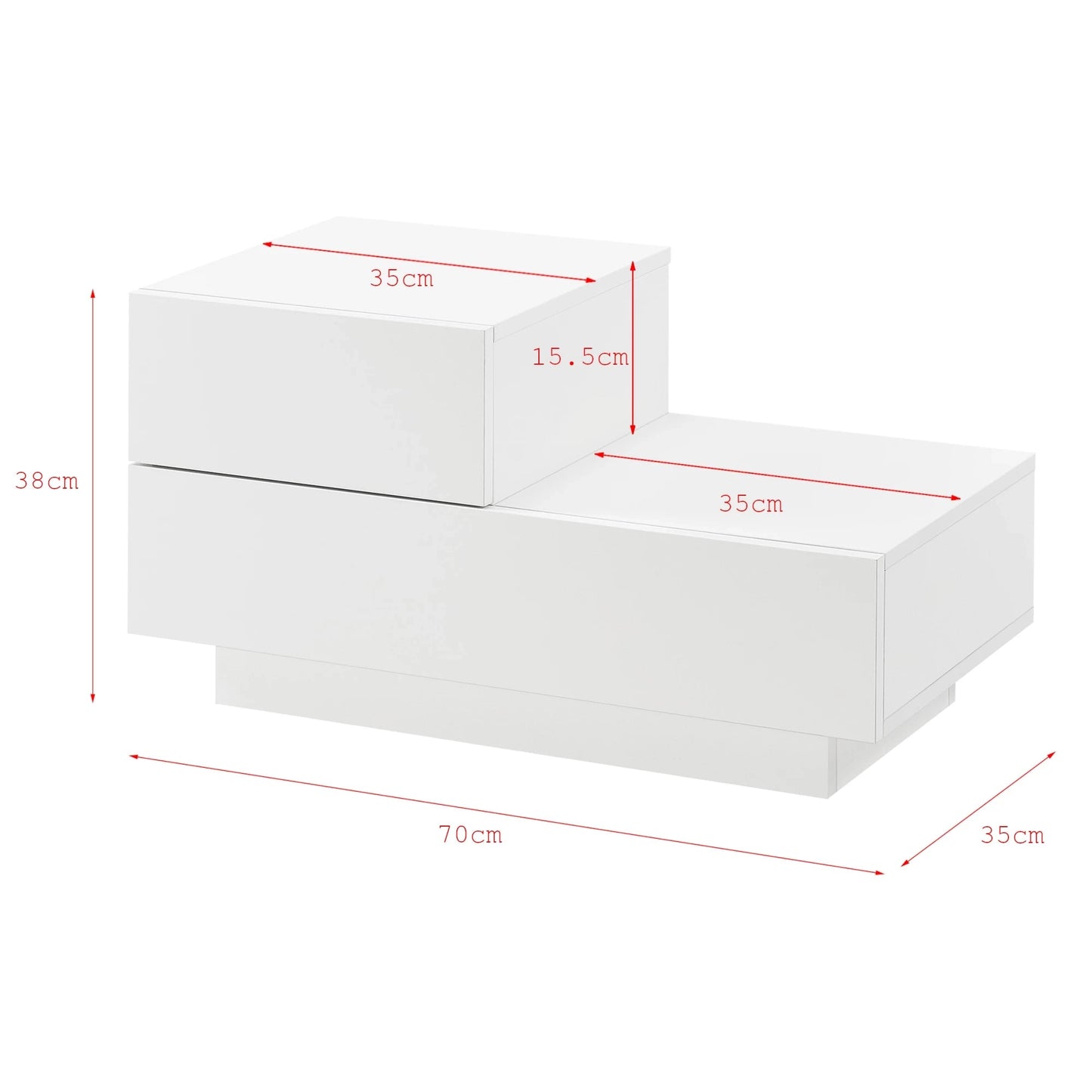 In And OutdoorMatch Nachttisch Rocio - Links - Mit Schubladen - 38x70x35 - Weiß Hochglanz - Spanplatte - Stilvolles Erscheinungsbild