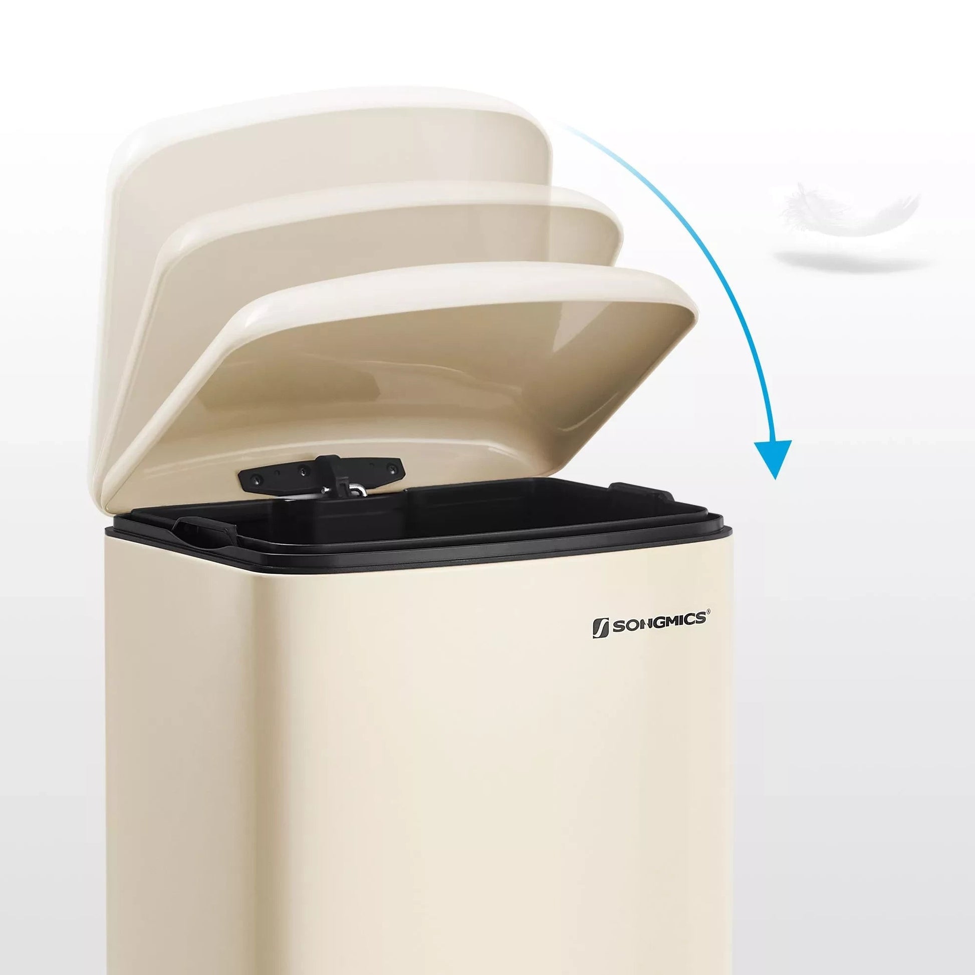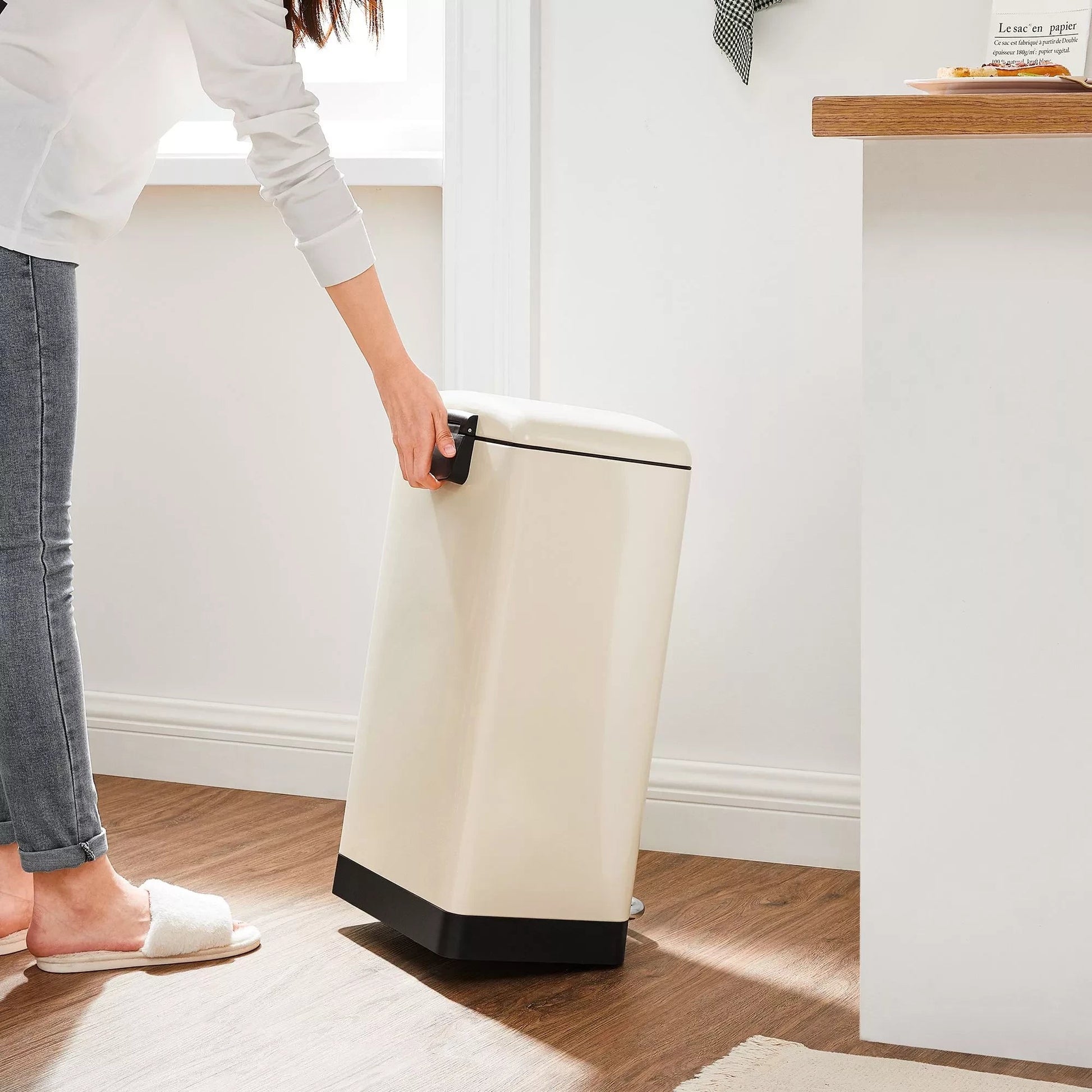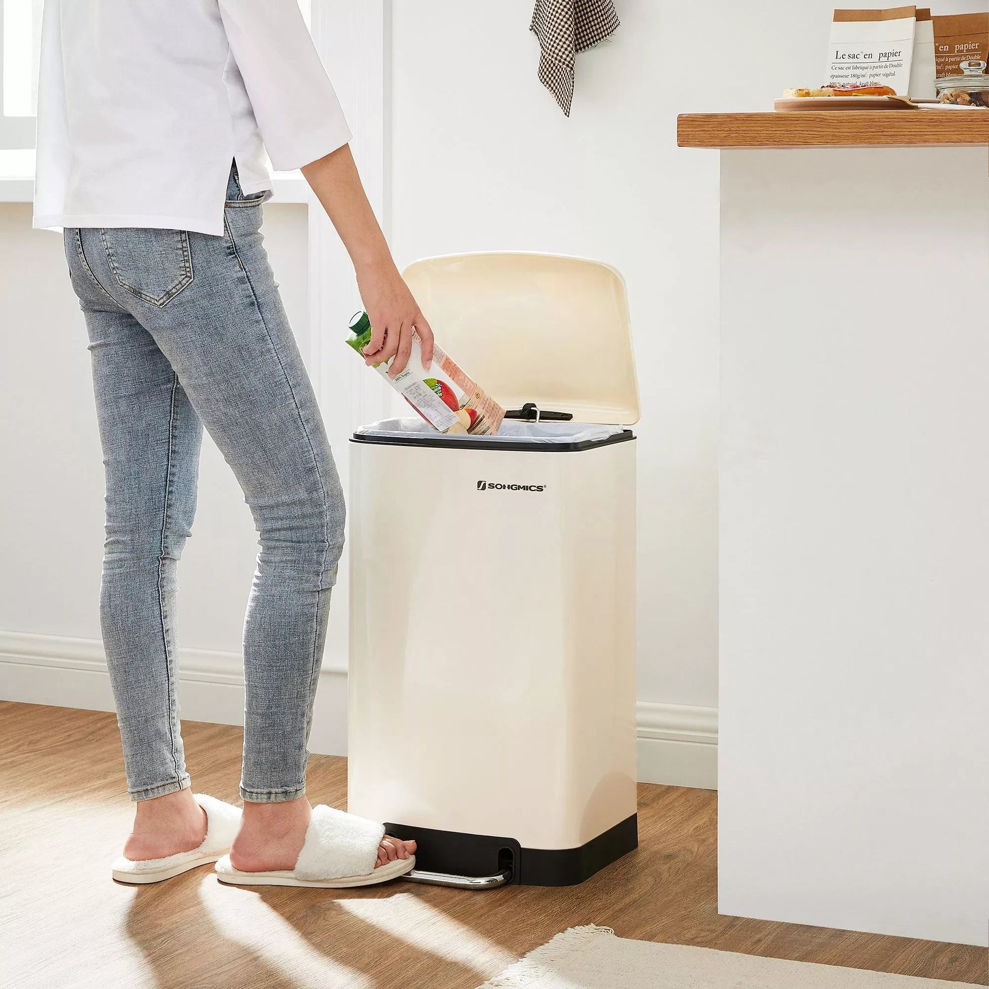 30-Liter-Mülleimer mit Pedal und Soft-CloseEin sauberes und aufgeräumtes Zuhause bedeutet mehr Komfort im Alltag.MultifunktionalKücheSchlafzimmerBadezimmerKinderzimmerRecycling ist auch einfach: Sie müssen nur auf das Pedal treten und den Müll in den Inneneimer werfen. Sie müssen den Behälter nicht einmal mit der Hand berühren, was für Hygiene sorgt. Darüber hinaus müssen Sie sich keine Sorgen machen, dass Ihr Hund den Mülleimer umwirft und der gesamte Küchenabfall auf Ihrem Boden landet. Der Deckel öffnet sich nur, wenn Sie auf das Pedal treten. Eine clevere Lösung für die Müllentsorgung: Dieser 30-Liter-Mülleimer ist robust und kompakt und überzeugt durch sein durchdachtes Design. Der Inneneimer lässt sich mithilfe der seitlichen Griffe leicht herausnehmen und reinigen; Die Öffnung an der Rückseite des Inneneimers verhindert ein Verrutschen Ihrer Mlltte. Maße: ca. 5 x 52 cm (L x B x H) Gesamthöhe (bei geöffnetem Deckel): 82 cm Gewicht: 4,5 kg Fassungsvermögen: 30 Liter Lieferumfang: 1 x Mülleimer In- und Outdoor passend Hinweise: Stellen Sie das Produkt auf ein ebener Boden. Schließen Sie den Deckel des Eimers. Reinigen Sie den Eimer nicht vollständig mit der Hand, da er automatisch schließt. Um das Produkt zu reinigen, wischen Sie es mit einem weichen, feuchten Tuch ab und verwenden Sie bei Bedarf ein mildes Reinigungsmittel