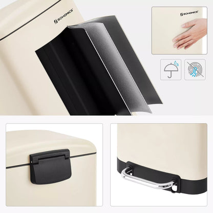 In And OutdoorMatch Treteimer Francisco – 30 l – Mülltrennung im Mülleimer – Edelstahl – 1 Teil getrennt – Creme