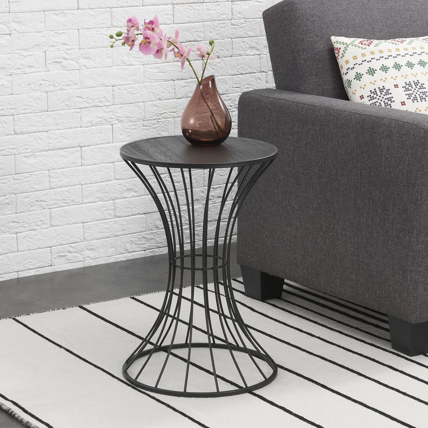 In And OutdoorMatch Couchtisch Tiana - Sanduhr rund - 55,5xØ37,5 - Metall und MDF - Schwarz -
