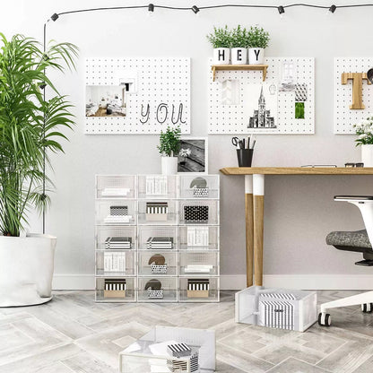 Schluss mit chaotischen Schuhstapeln Werfen Sie Ihre Schuhe jedes Mal einfach in den Schrank, sodass Sie nach einer Weile einen chaotischen Schuhstapel haben? Befreien Sie sich von dieser schlechten Angewohnheit! Kaufen Sie diese 18 Schuhkartons und bewahren Sie alle Ihre Schuhe ordentlich und ordentlich auf, bis Sie sie das nächste Mal tragen. Schuhe effizient organisieren Alle Schuhe bis Größe 42 passen in diese Boxen und können staubfrei gelagert werden. Brauchen Sie weiße Sandalen? Finden Sie sie auf einen Blick, öffnen Sie die Tür jeder Box und nehmen Sie Ihre Schuhe einfach heraus – perfekt, wenn Sie es morgens eilig haben! Noch besser: Mehrere dieser Boxen lassen sich platzsparend übereinander stapeln und eignen sich somit ideal für den Flur, die Garderobe oder das Lagerregal. Produktdetails: – Farbe: transparenter Körper, weiß – Material: Körper aus PP (Polypropylen), Tr aus PS (Polystyrol) – Maße pro Box: 33,3 x 23 x 14 cm (L x B x H) – Innengröße pro Karton: 30 x 22,5 x 13,5 cm (L x B x H) - Gewicht: 5,3 kg Lieferumfang: - 18 x Schuhkarton - 1 x Handbuch (DE, EN, FR, ES, IT) InandOutdoormatch Hinweise: - Befolgen Sie die Befolgen Sie die Montageschritte in der Anleitung und im Video, um das Produkt einzurichten. Wenden Sie bei der Demontage auch keine Gewalt an. - Bitte messen Sie Ihre Schuhe vor dem Kauf und prüfen Sie, ob sie in diese Schuhkartons passen.