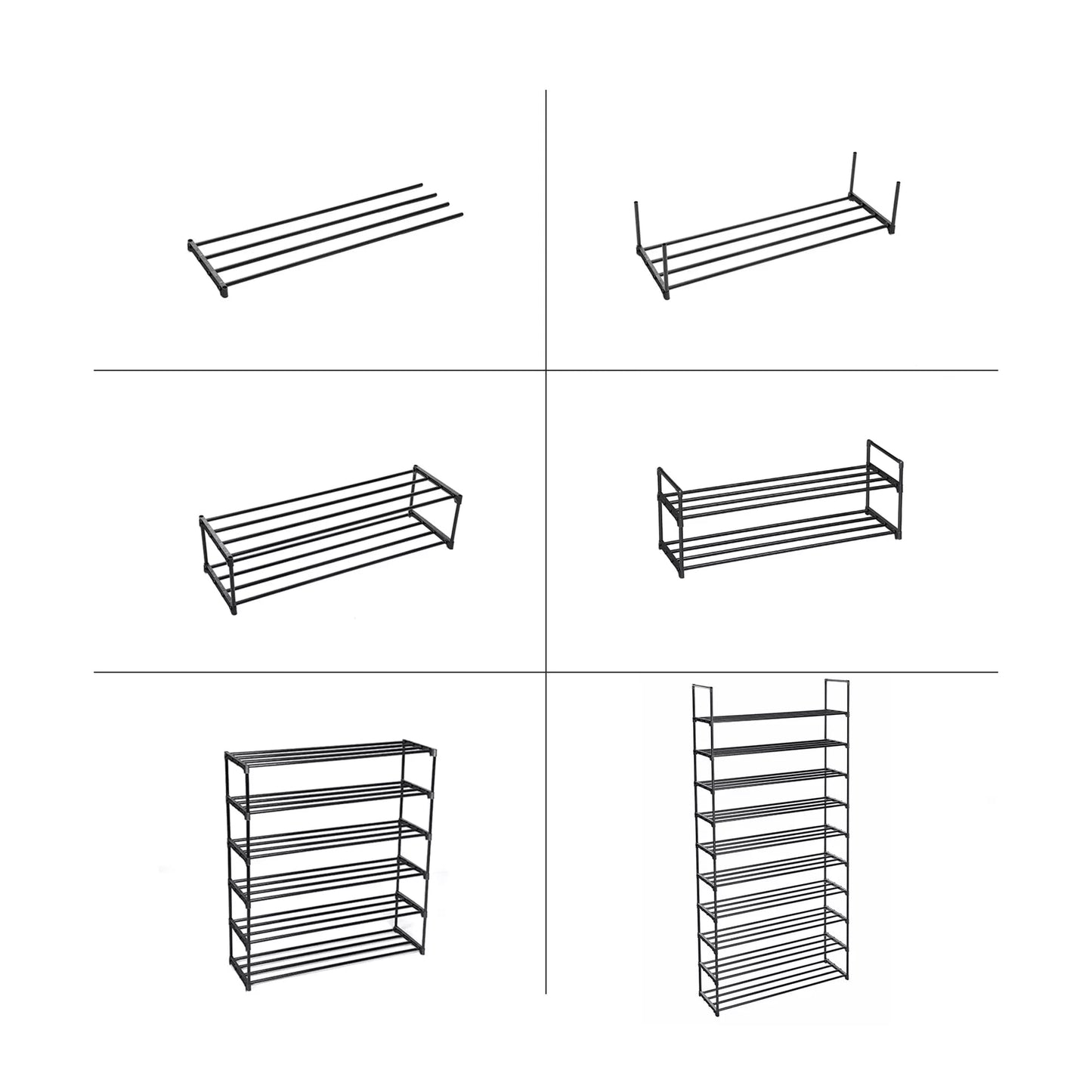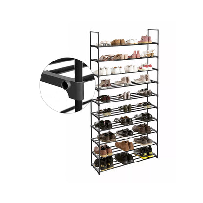 VERSTELLBAR – Intelligentes Design: Dieses Schuhregal ist einfach zu montieren und anzupassen. Sie können bei der Montage ein oder zwei Regale weglassen, um Platz für Ihre neuen Stiefel zu schaffen! Möchten Sie dieses Regal in zwei kleine Möbelstücke teilen? Kein Problem! Wie viele Paar Schuhe passen in das Regal? 40-50 Paare? Kein Problem! Auf jedes Regal passen 5 Paar Damenschuhe oder 4 Paar Herrenschuhe. In diesem Regal finden die Schuhe aller Ihrer Familienmitglieder einen passenden Platz. Produktdetails: Farbe: Schwarz Material: Metallrohre, Kunststoffverbindungen Abmessungen: 92 x 30 x 194 cm (L x B x H) Abstand zwischen den Regalen: 20 cm Gewicht: 4,4 kg Max. statische Belastbarkeit pro Boden: 4 kg max. Statische Belastbarkeit des gesamten Regals: 40 kg Lieferumfang: 1 x Schuhregal 1 x Anleitung (DE,EN,FR,ES,IT)InandOutdoormatch Hinweise:Verwenden Sie das Produkt nicht im Freien. Es wird empfohlen, den mitgelieferten Kippschutz zu verwenden, um ein Umkippen und Verletzungen zu vermeiden. Die maximale Belastbarkeit im Text bezieht sich auf das statische Maximalgewicht.