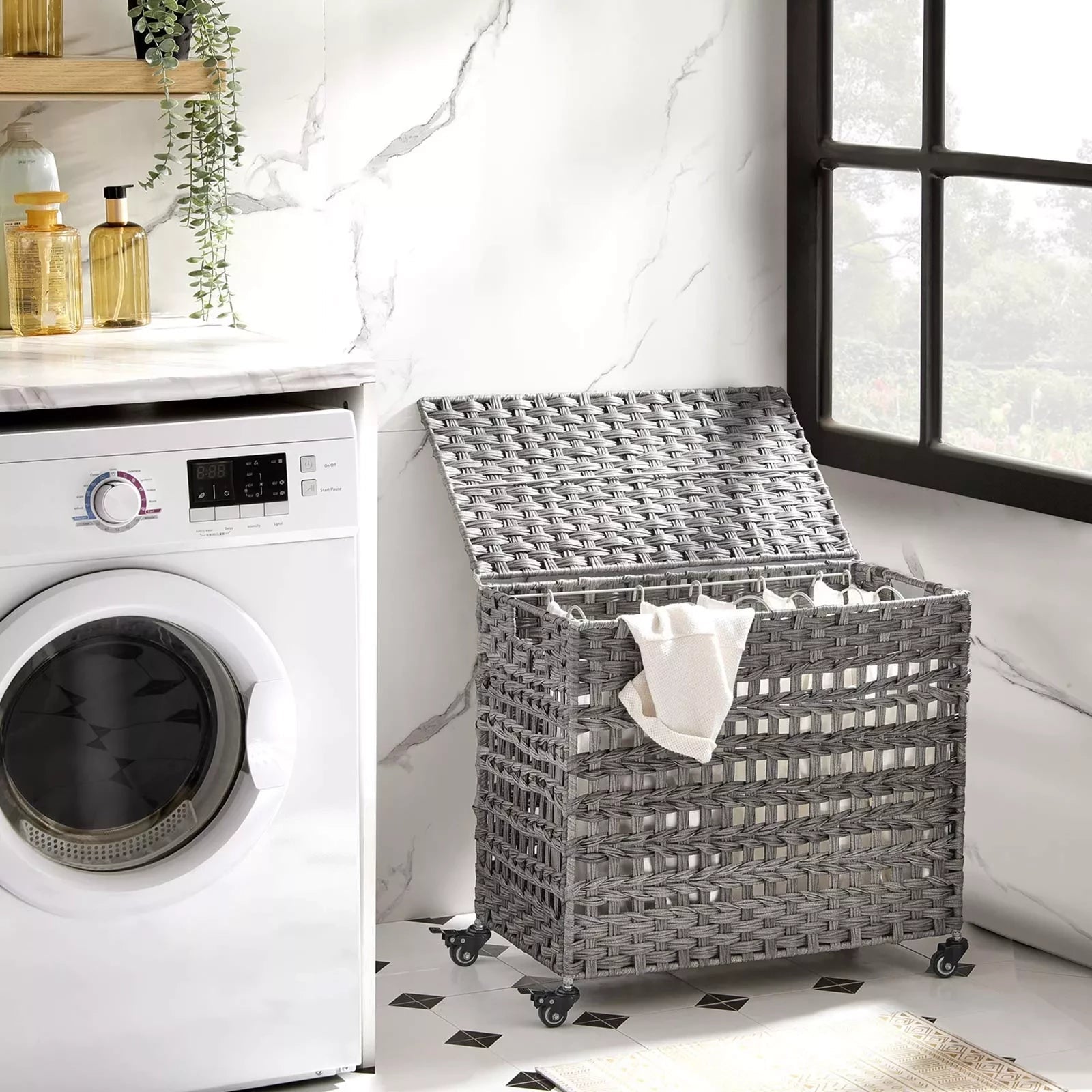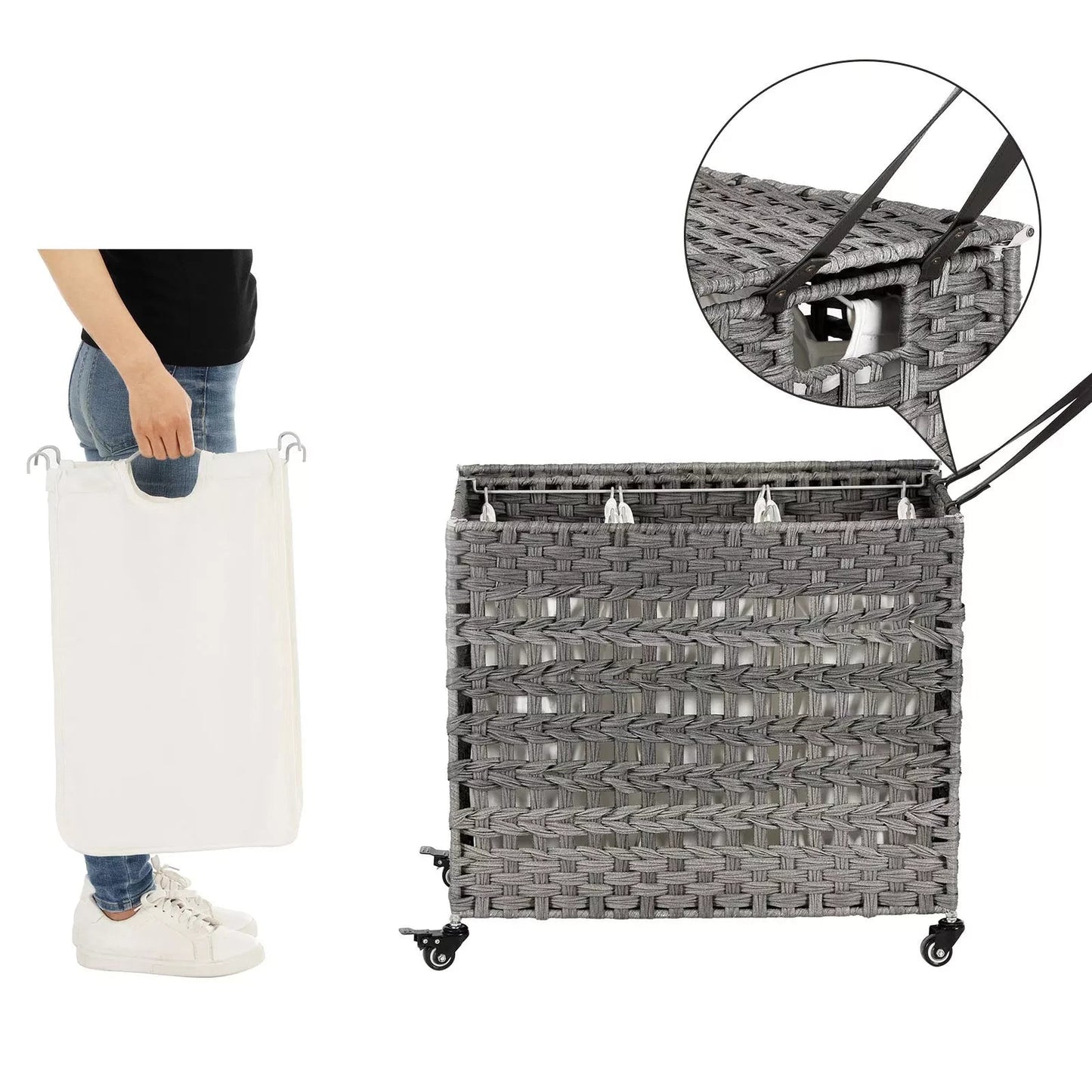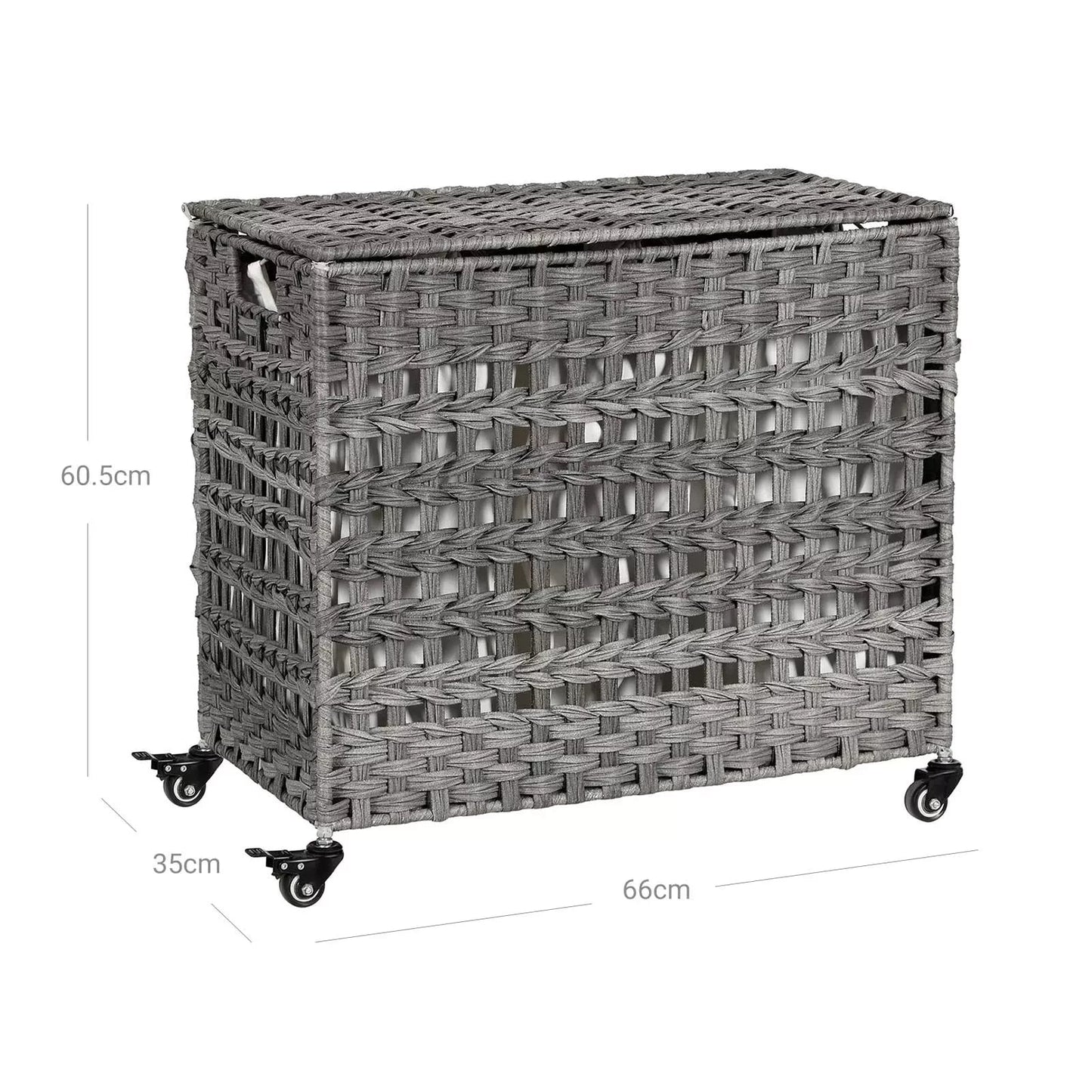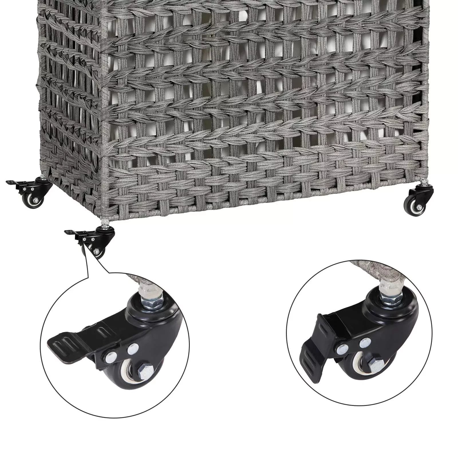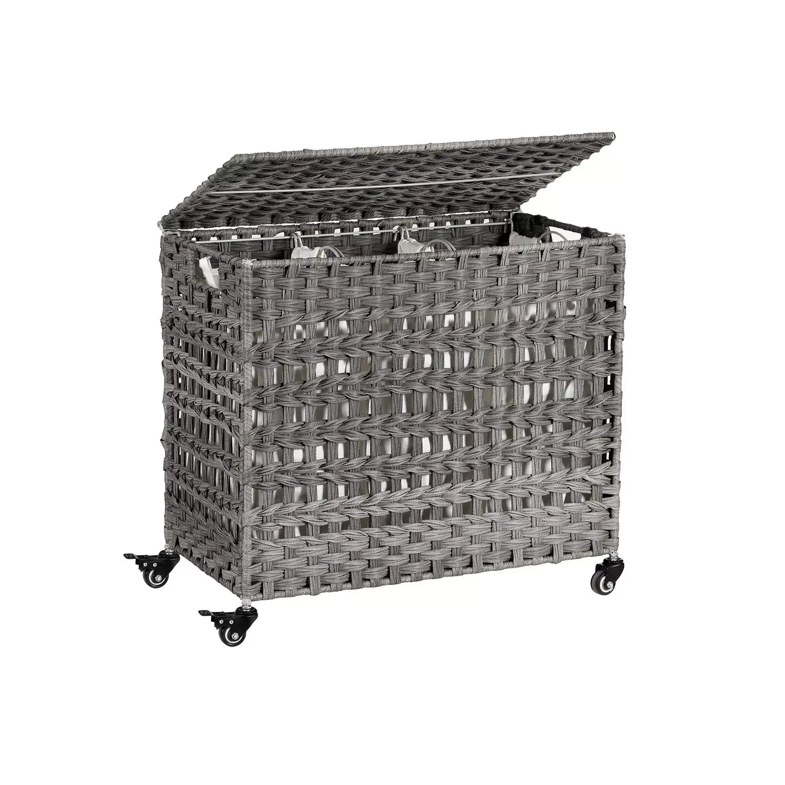 In And OutdoorMatch Firalda Wäschekorb auf Rädern – Mit Griffen – Wäschebox – Rechteckig – Wäschesortierer – Rattangeflecht – 3 Fächer