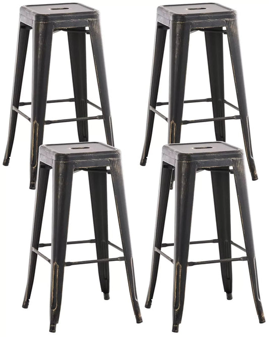 In And OutdoorMatch Rustic Bar Stool Ubaldo - Brass - Industrial Design - Footrest - For Kitchen and Bar - Metal Seat