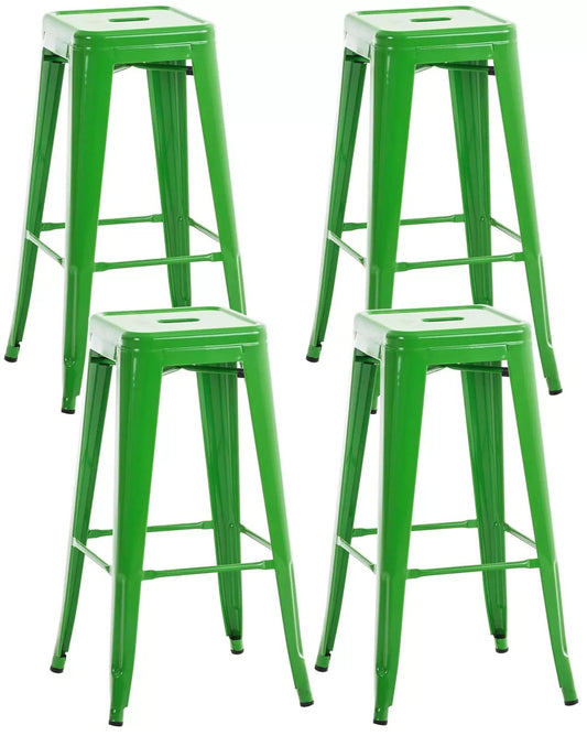 In And OutdoorMatch Rustic Bar Stool Lou - Green - Industrial Design - Backrest - For Kitchen and Bar - Metal Seat