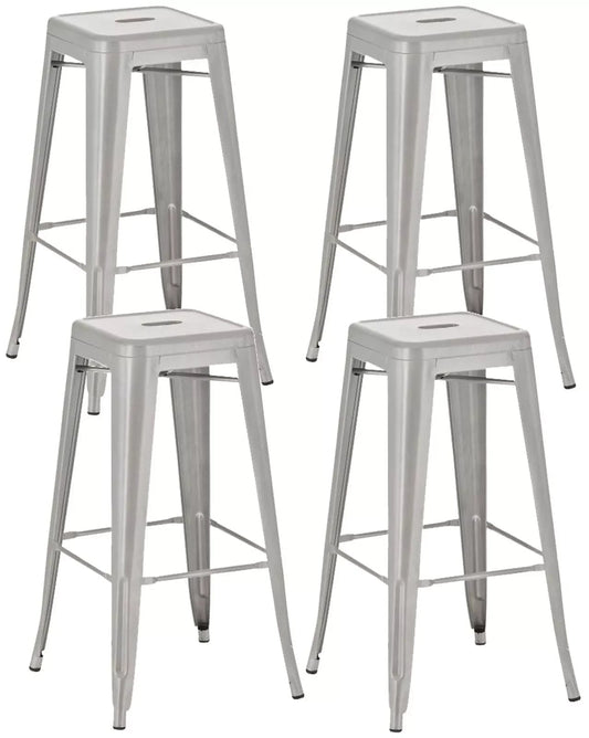 In And OutdoorMatch Rustic Bar Stool Markus - Silver/Gray - Industrial Design - Backrest - For Kitchen and Bar - Metal Seat