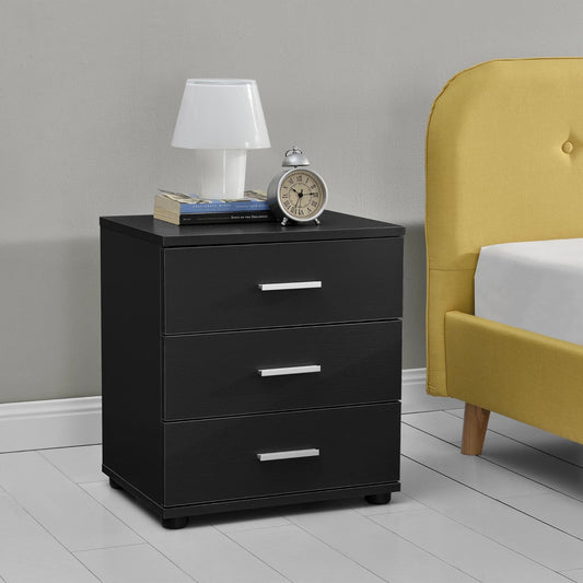 In And OutdoorMatch Bedside Table Rowland - Chest of Drawers - With 3 Drawers - 45x34x50 cm - Black - Chipboard