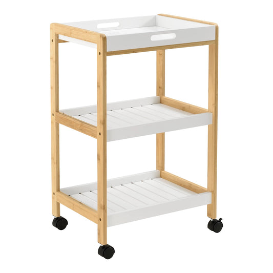In And OutdoorMatch Kitchen Trolley Jamison - With 3 Shelves - 75x46x35 - Wood-colored and White - Bamboo, MDF and Plastic - Stylish Design