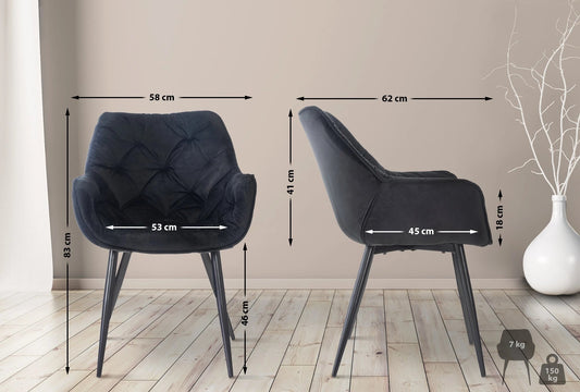 In And OutdoorMatch Dining room chairs Idony - Black - Set of 2 - Velvet - High-quality upholstery - Luxury dining room chair - Stylish appearance