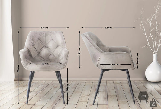 In And OutdoorMatch Dining room chairs Kourtney - Gray - Set of 2 - Velvet - High-quality upholstery - Luxury dining room chair - Stylish appearance