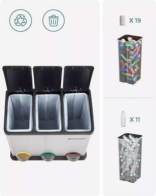 In And OutdoorMatch Pedal Bin Raymond - Trash bin waste separation - Stainless steel - 3 part separation - White - 61x31x56cm