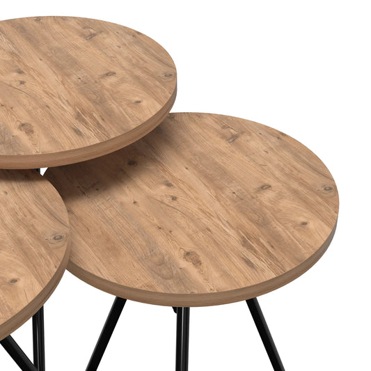 In And OutdoorMatch Side Table Erik - Set of 3 - Round - Wood-colored and Black - Chipboard and Metal - Stylish design