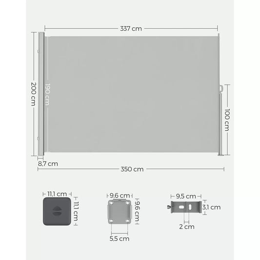 In And OutdoorMatch Side Canopy Lelah - Extendable - Gray - 200x400cm - Privacy protection - Sun protection - Balcony - Terrace - Garden