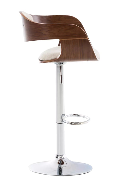 In And OutdoorMatch Bar Stool Norval - Brown/White - Chrome - Modern Design - Backrest - Footrest - For Kitchen and Bar - Upholstered Seat