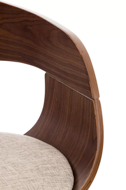 This designer bar stool gives every counter an exclusive look. It convinces not only with its excellent seating properties, but also with its modern design. The seat and backrest of the wooden seat are covered with high-quality fabric upholstery. The frame is made of metal with a chrome look and can be cleaned quickly and easily.