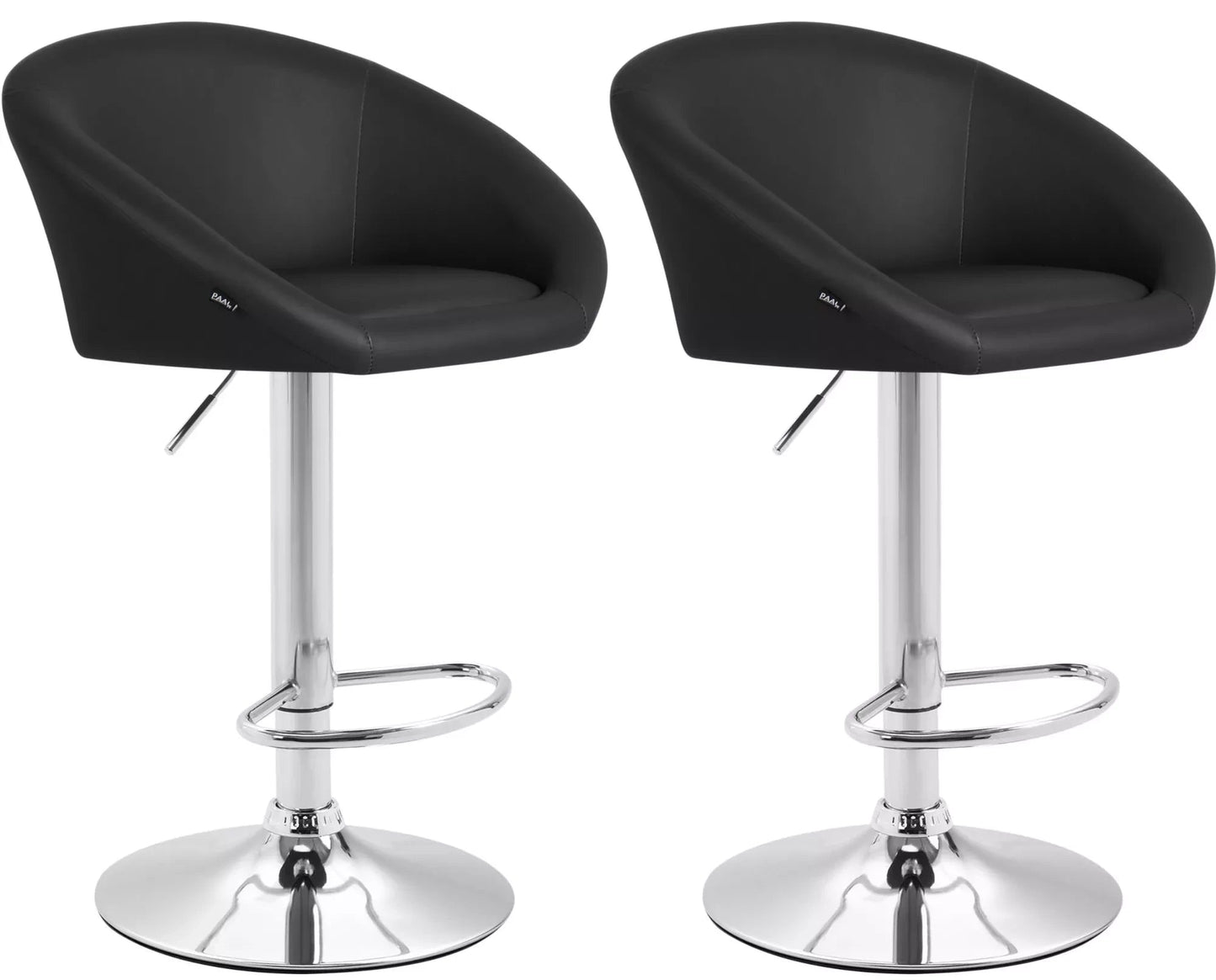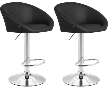 In And OutdoorMatch Bar Stool Tiago Jayne - Black - Chrome - Modern Design - Backrest - Footrest - For Kitchen and Bar - Upholstered Seat - Imitation Leather