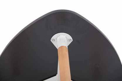 This kitchen table is characterized by its functionality, naturalness and versatility. The triangular table top is made of MDF and lies stable and stable on a beech wood frame. The frame is equipped with adjustable floor protectors, so that small irregularities in the floor can be absorbed without any worries. Thanks to the wide range of variants, this dining table can easily be integrated into any living environment.