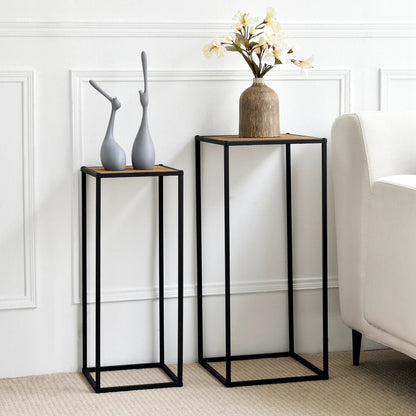 In And OutdoorMatch Side Table Patrick - Rectangle - Set of 2 - Black and Wood-colored - Chipboard and Metal - Stylish design