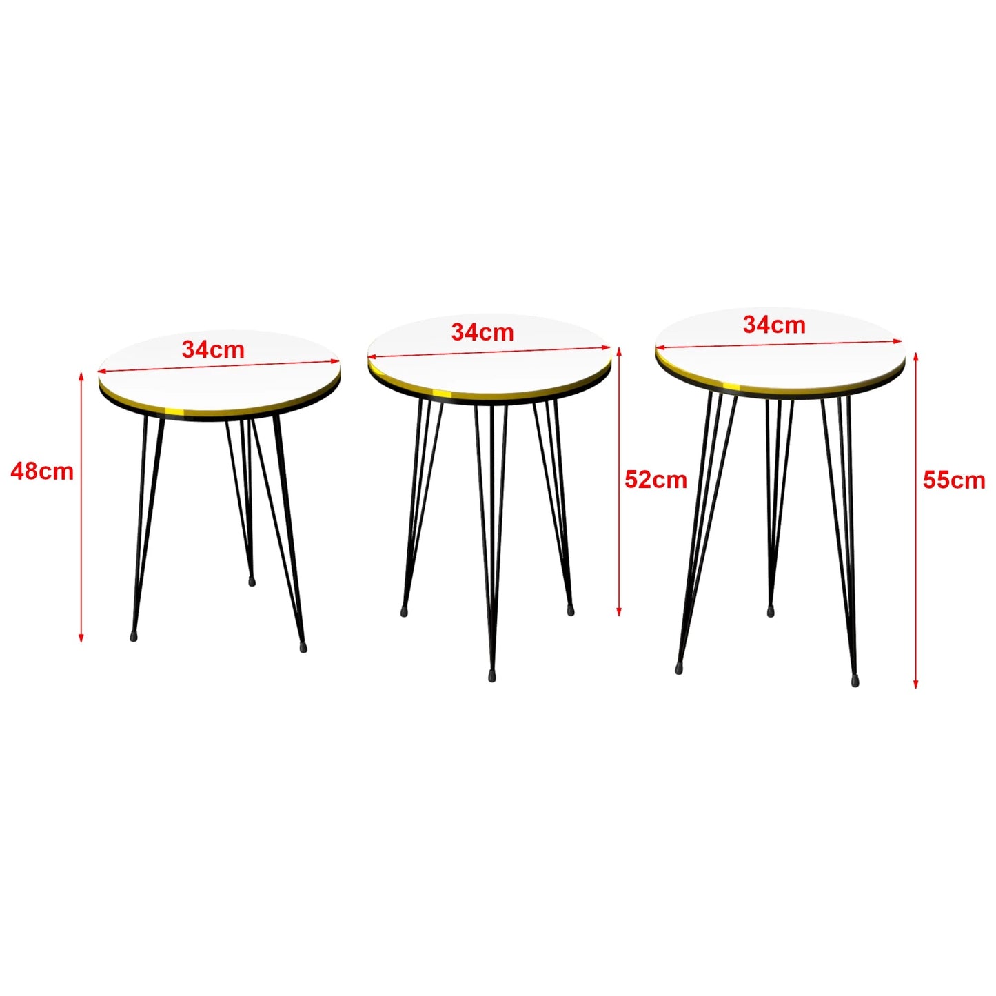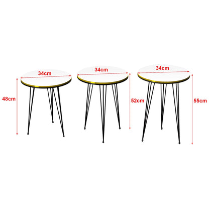 In And OutdoorMatch Side Table Pilfix - Set of 3 - Round - Black and White - Chipboard and Metal - Stylish design