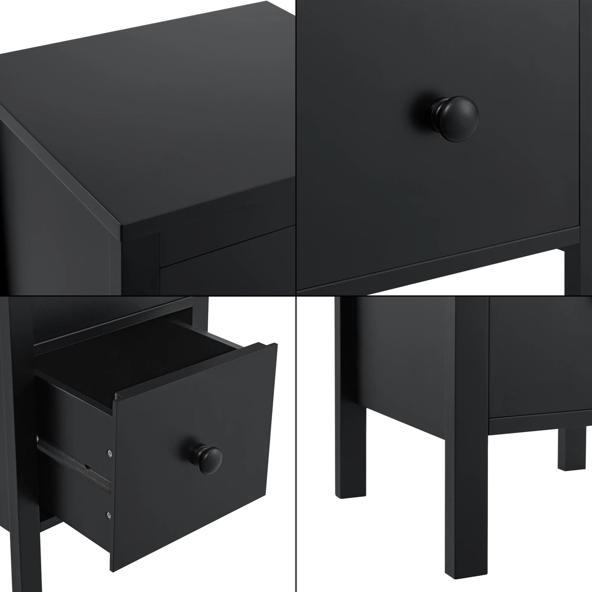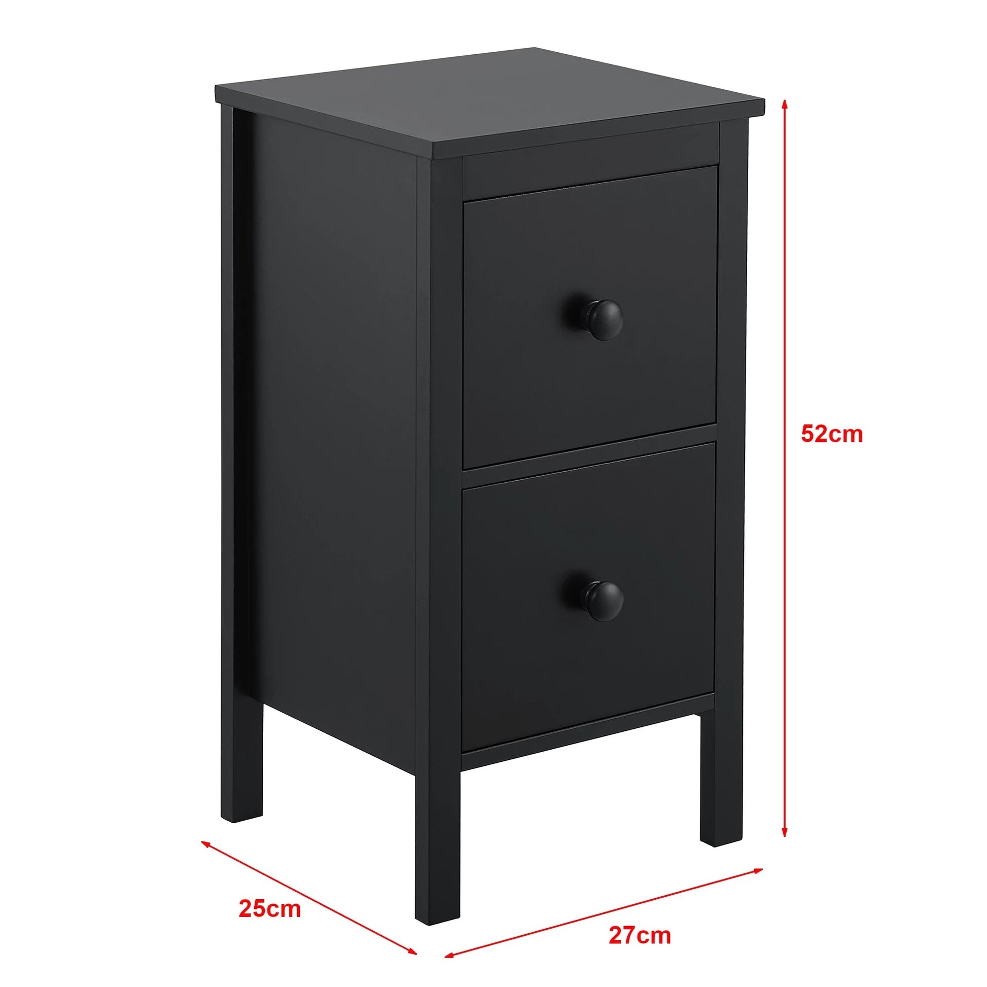 In And OutdoorMatch Side Table Shaniya - With 2 Drawers - Bedside Table - 52x27x25 cm - Black - MDF - Modern Design