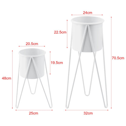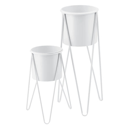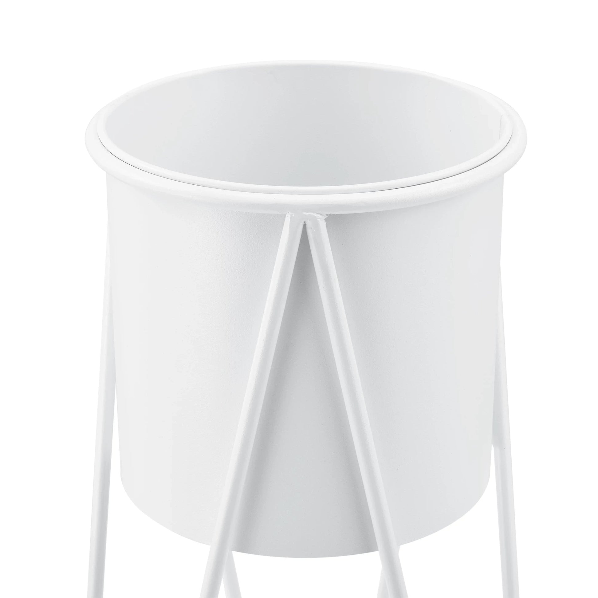 In And OutdoorMatch Flower Pot Kaden - On Stand - Metal - Set of 2 - White - Stylish Design